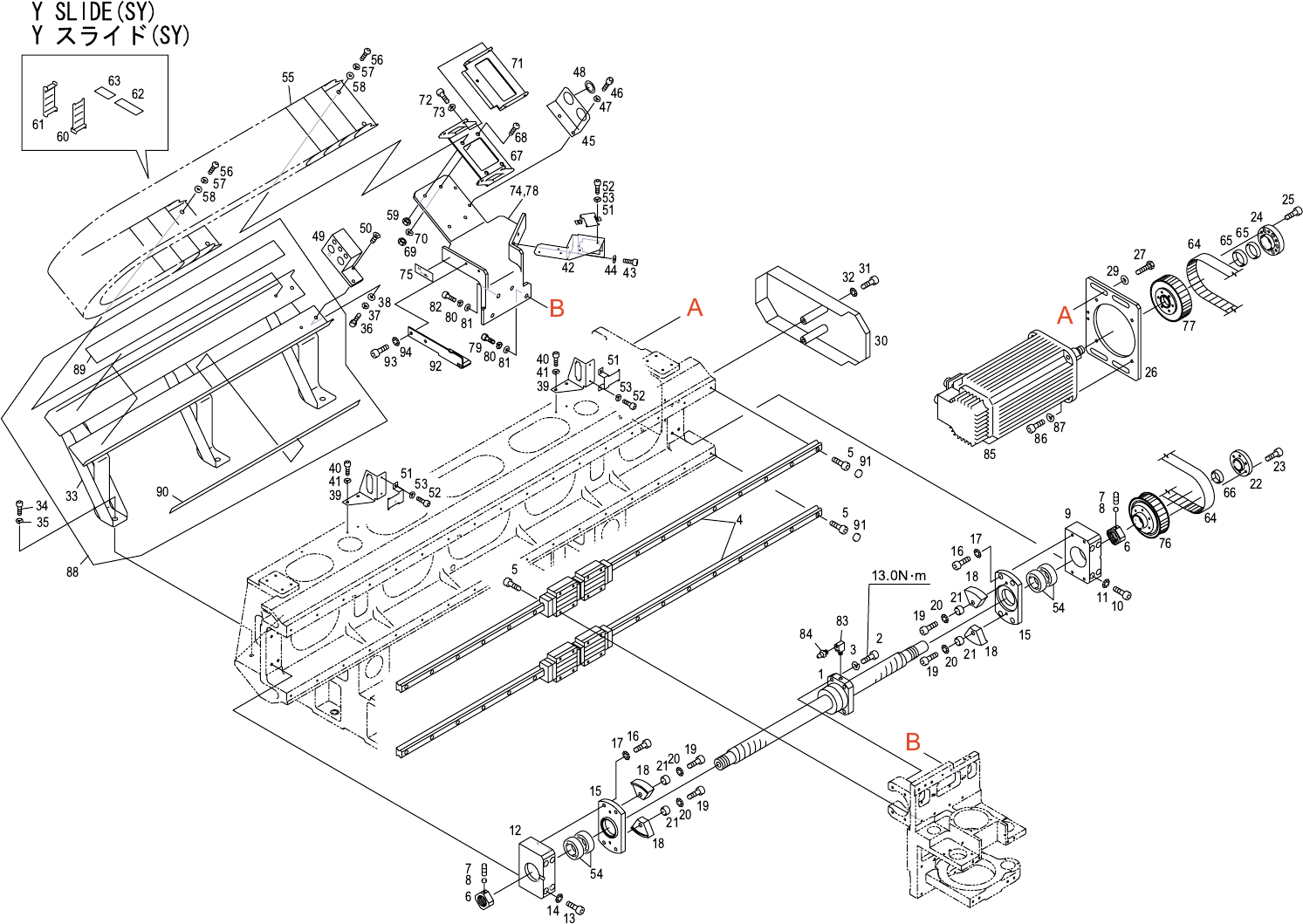 Y SLIDE(SY) Y スライド(SY) 番号 図番 & コード番号 個数 品名 規格 材質 備考 No. Drg.No. & Code No. QTY Description Rating Materials Remarks 1 DESY1010 1 BALL SCREW ボールネジ OT 2 H5326A 4 BOLT, HEX SOCKET ボルト 六角穴 M06X025 ゼンネジ FE 3 W1024A…