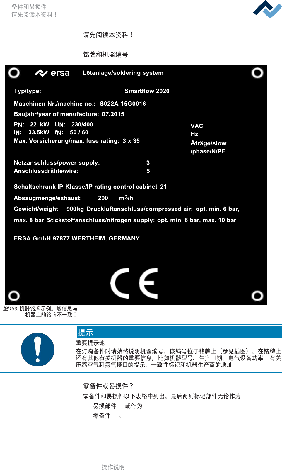 Powerflow_zh | Re v. 4a Ersa Gm bH 492 / 561 9 | 9 9.1 请先阅读本资料 ! ......................................................................................................................................... 4 93 9.1.1 铭牌和机器编…