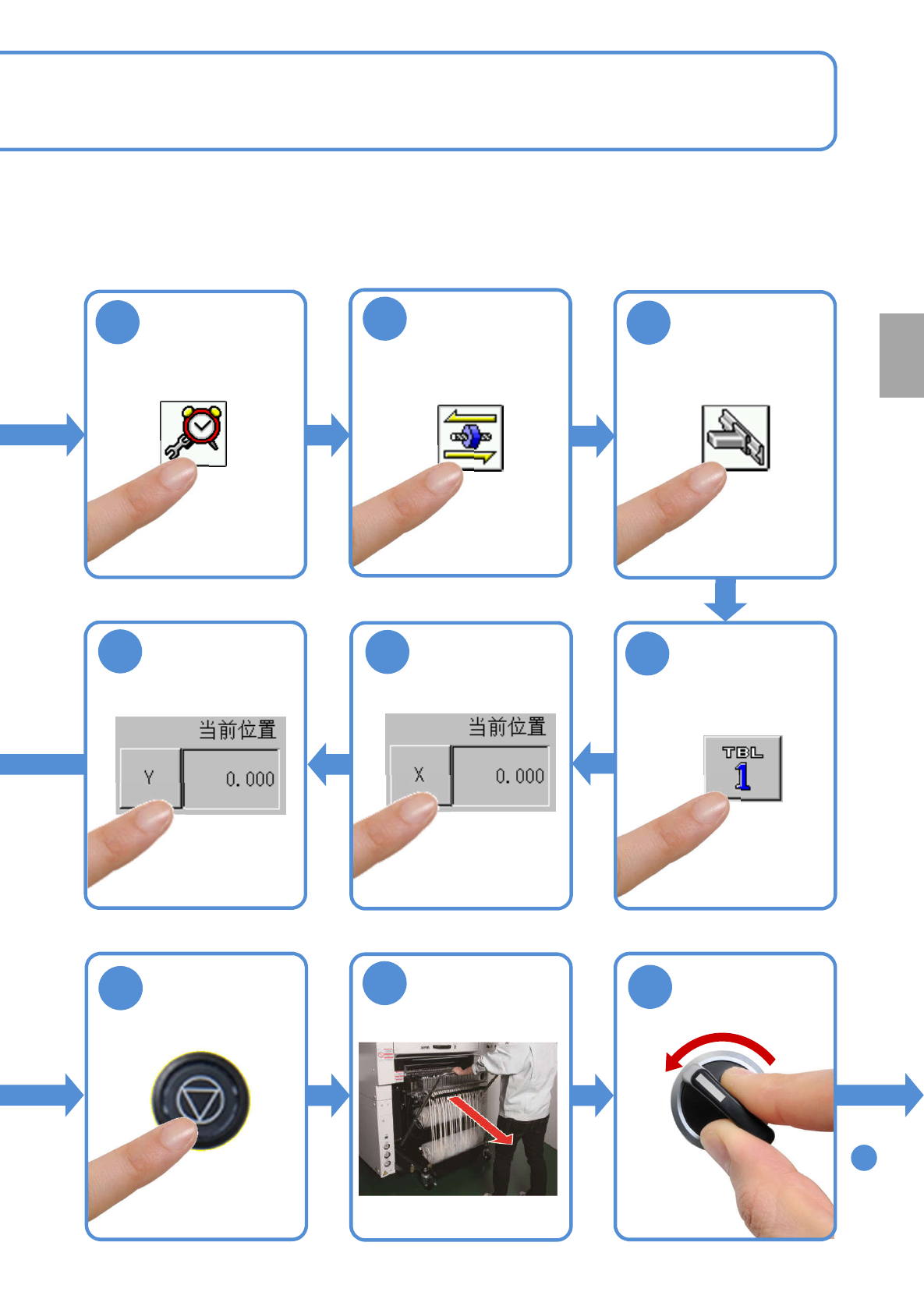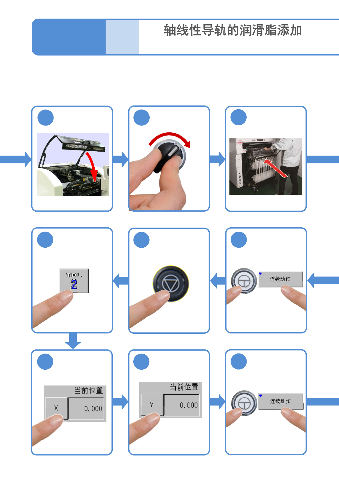NPM-W2 EJM7DC-MB-06M-00 选择 X 轴 XY 3 6-2 -5 维修保养篇 6 - 2 ENABLING 往返 10 次 12 13 ( 前侧、后侧 ) SERVO ON 14 2 1 22 23 24 25 26 选择 Y 轴 选择工作台 ST OP 安装交换台车 ( → P.3-2) ENABLING 往返 10 次