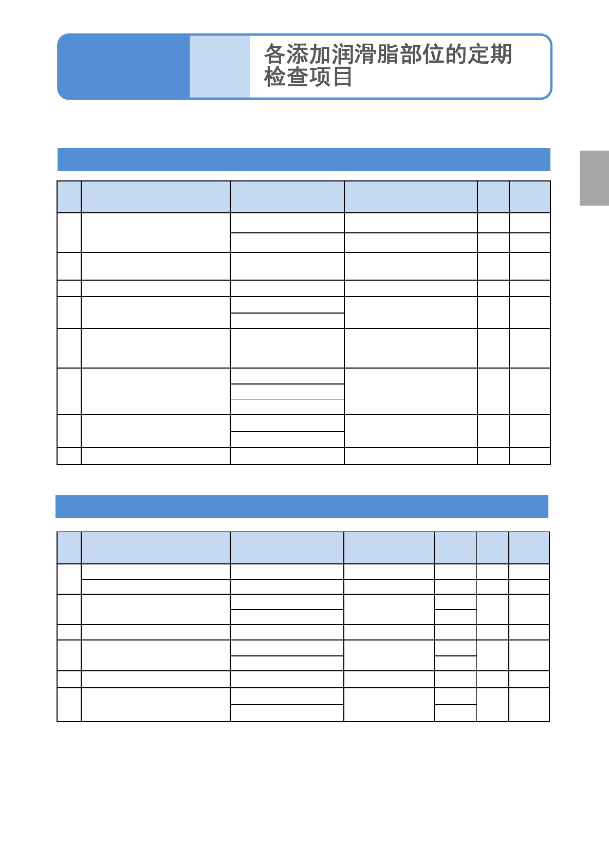 下表记述各对象单元的添加润滑脂部位和润滑脂名称。