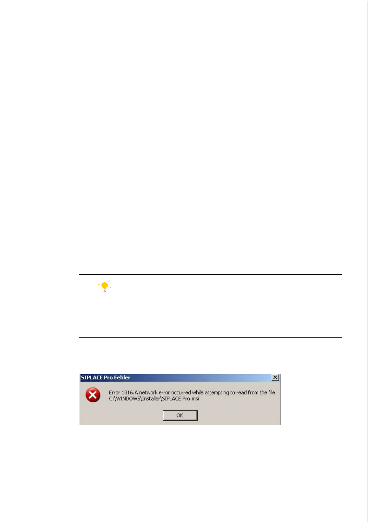 tioned in the error message e.g. c:/Windows/Installer/SIPLACE Pro.msi.