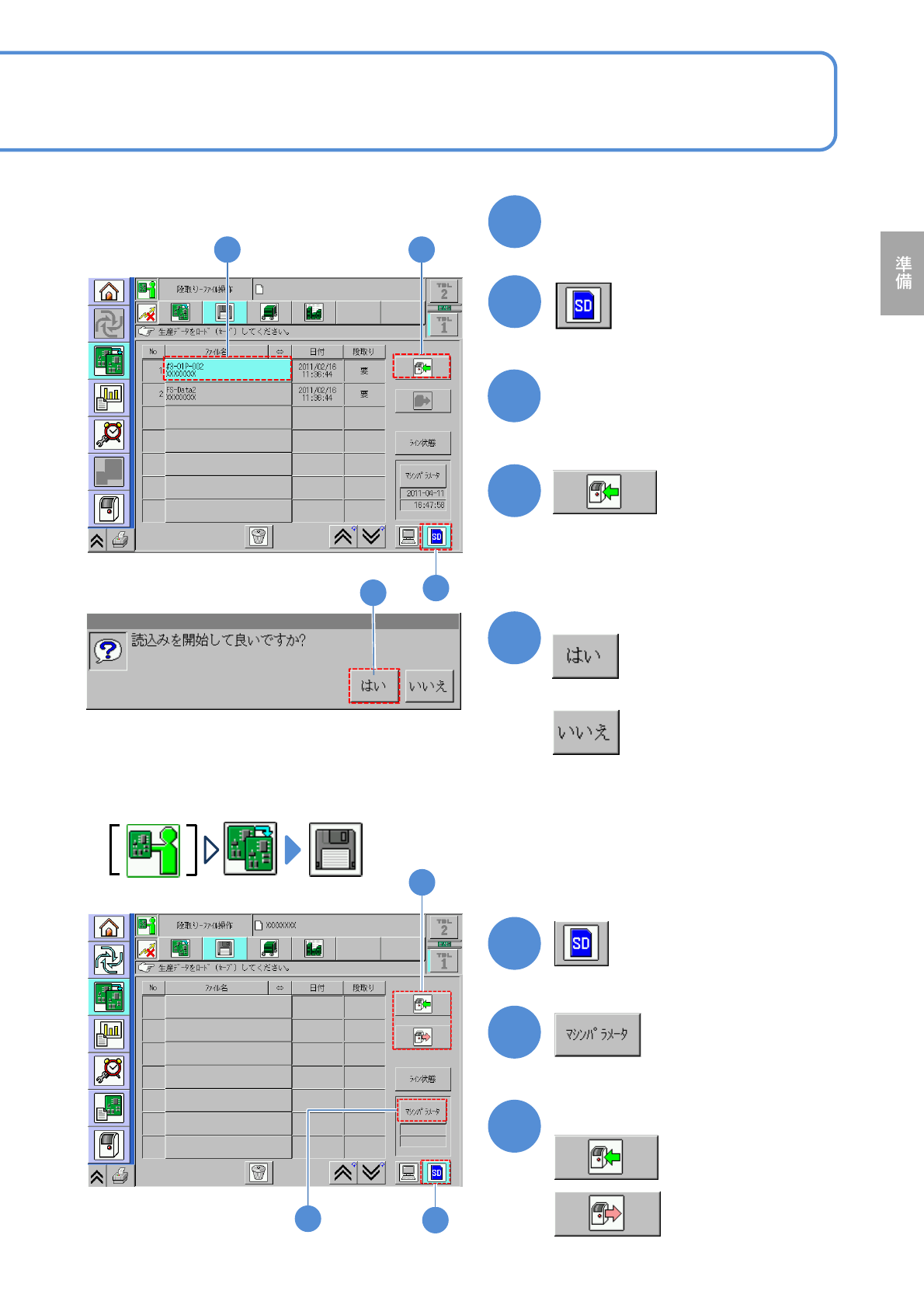 ■マシンパラメーターをSDカードから設備に読み込み/設備からSDカードに保存する