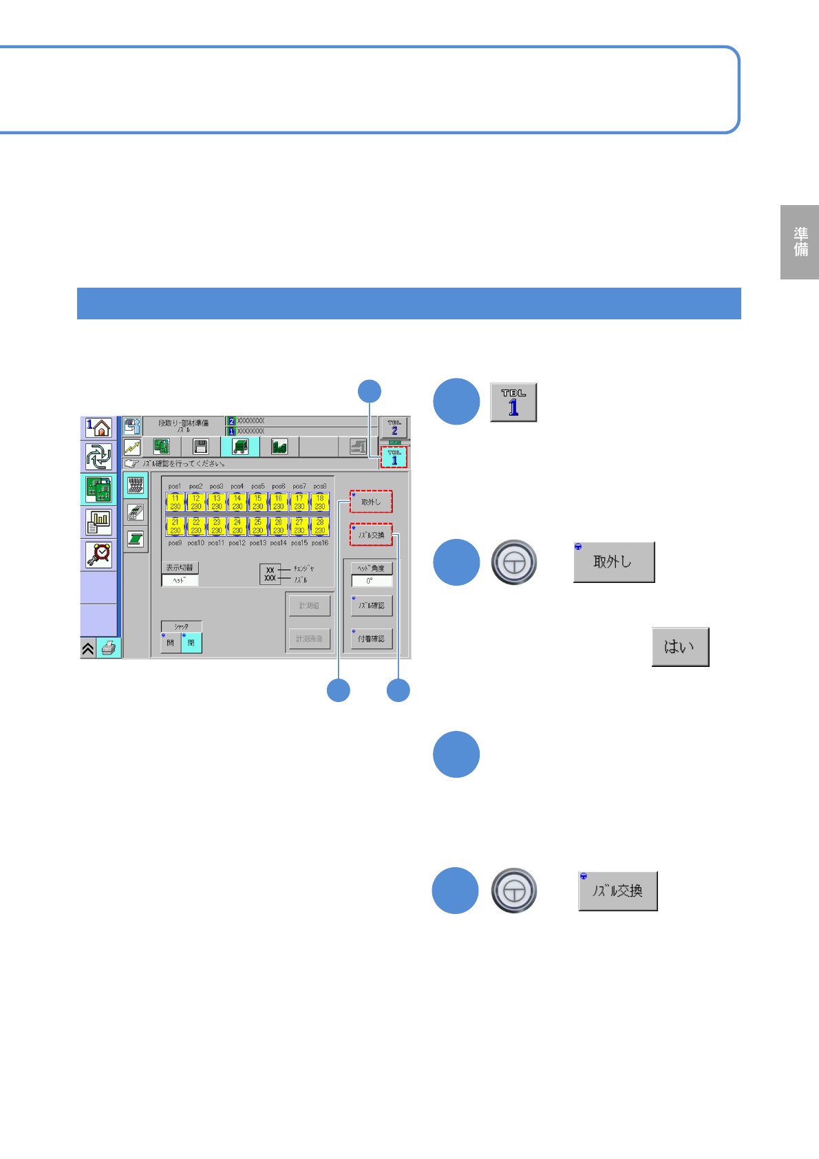 ●3ノズルヘッドの場合は「ノズル交換」ボタンは表示されません。