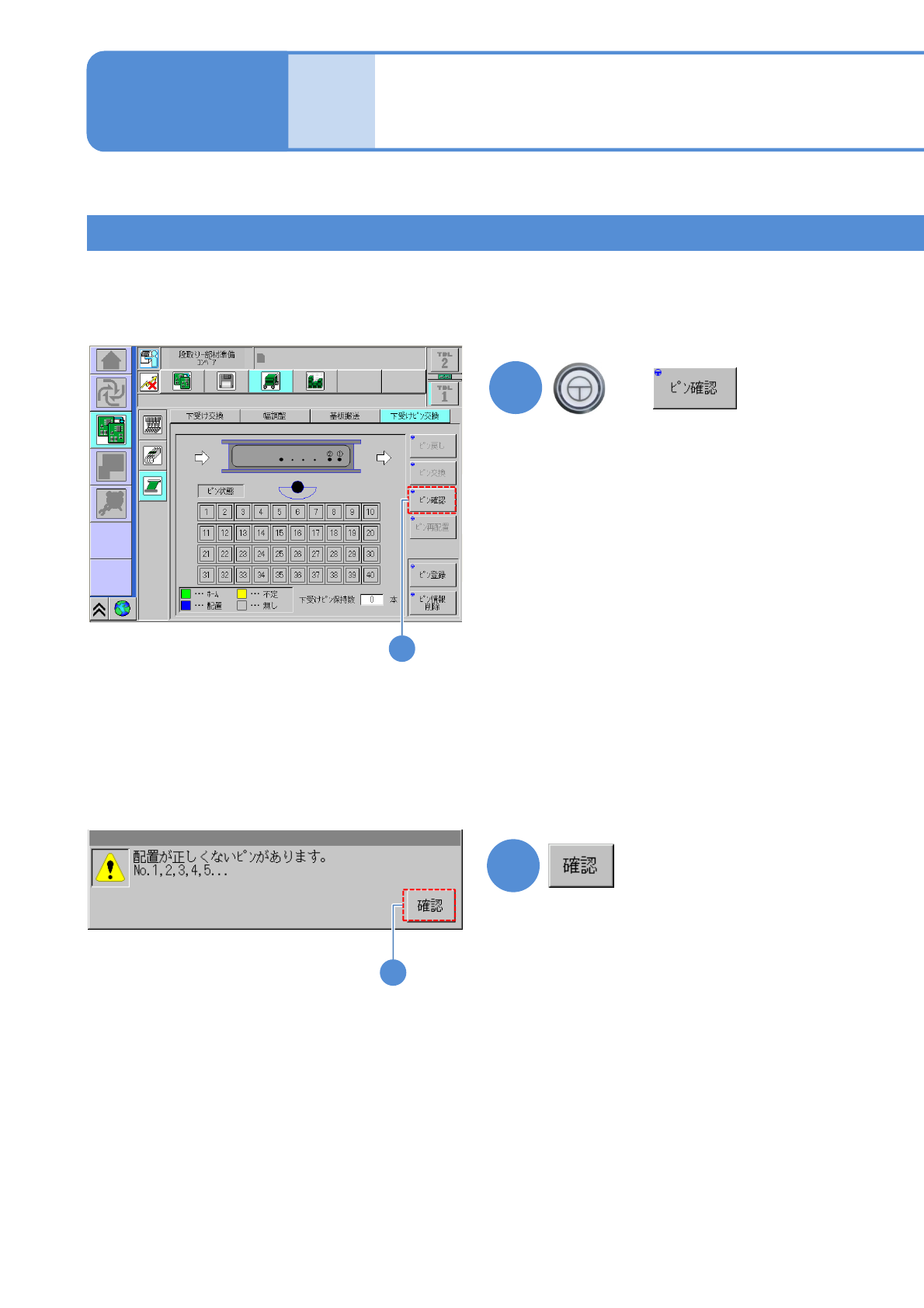 戻し、「下受けピンの本数の確認」からやり直す。