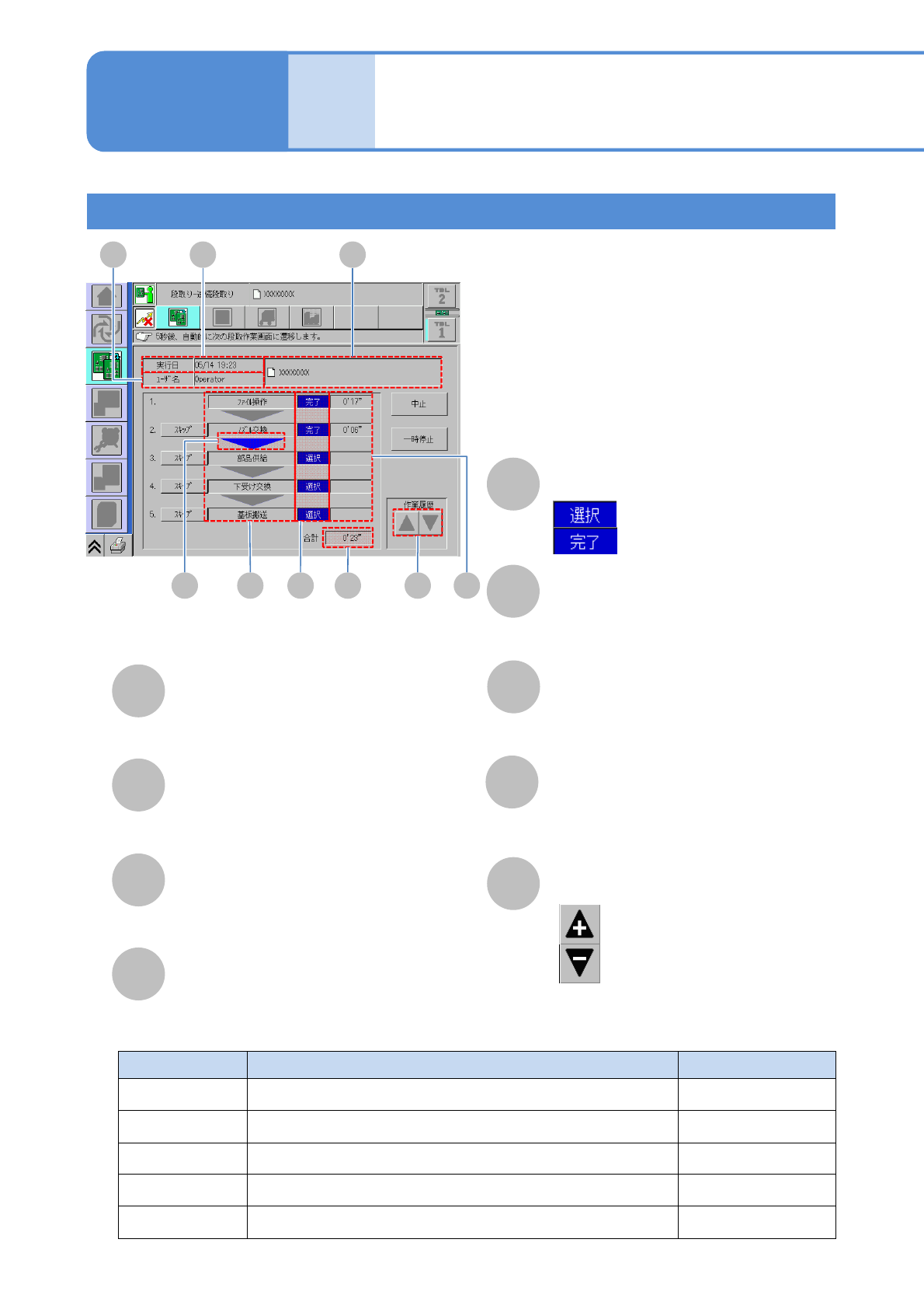 NPM-W 2 EJM7DJ-MB-02O-00 画面の見方 2-6 -1 F H l A E B C D 作業名 内容 参照ページ ファイル操作 機種切り替えのとき、生産データの読み込みや保存を行う。 ( → P.2-3-2 ~ 2-3-6) ノズル交換 ノズルの交換を行う。 ( → P.2-5-2) 部品供給 フィーダーを取付ける。 ( → P.2-4-1 ~ 2-4-5) 下受け交換 基板下受けを交換する。 ( → P.2-5-3…