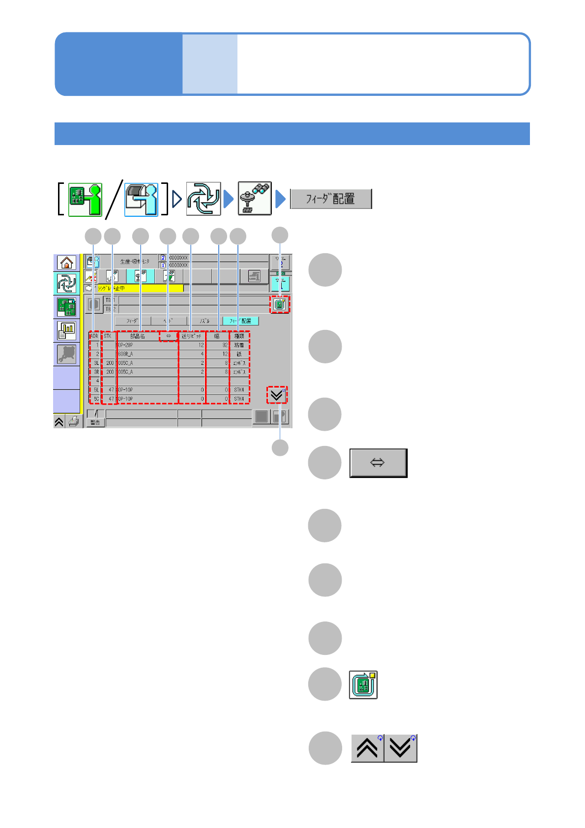 ●供給部に配置されたフィーダーの情報が表示されます。