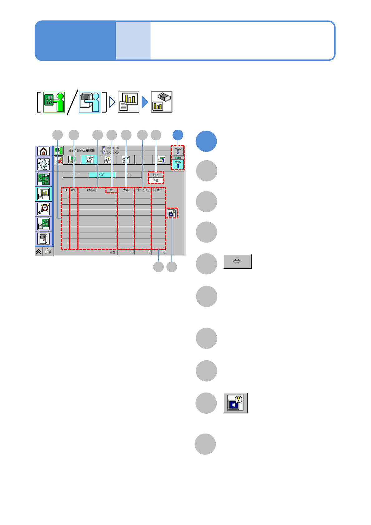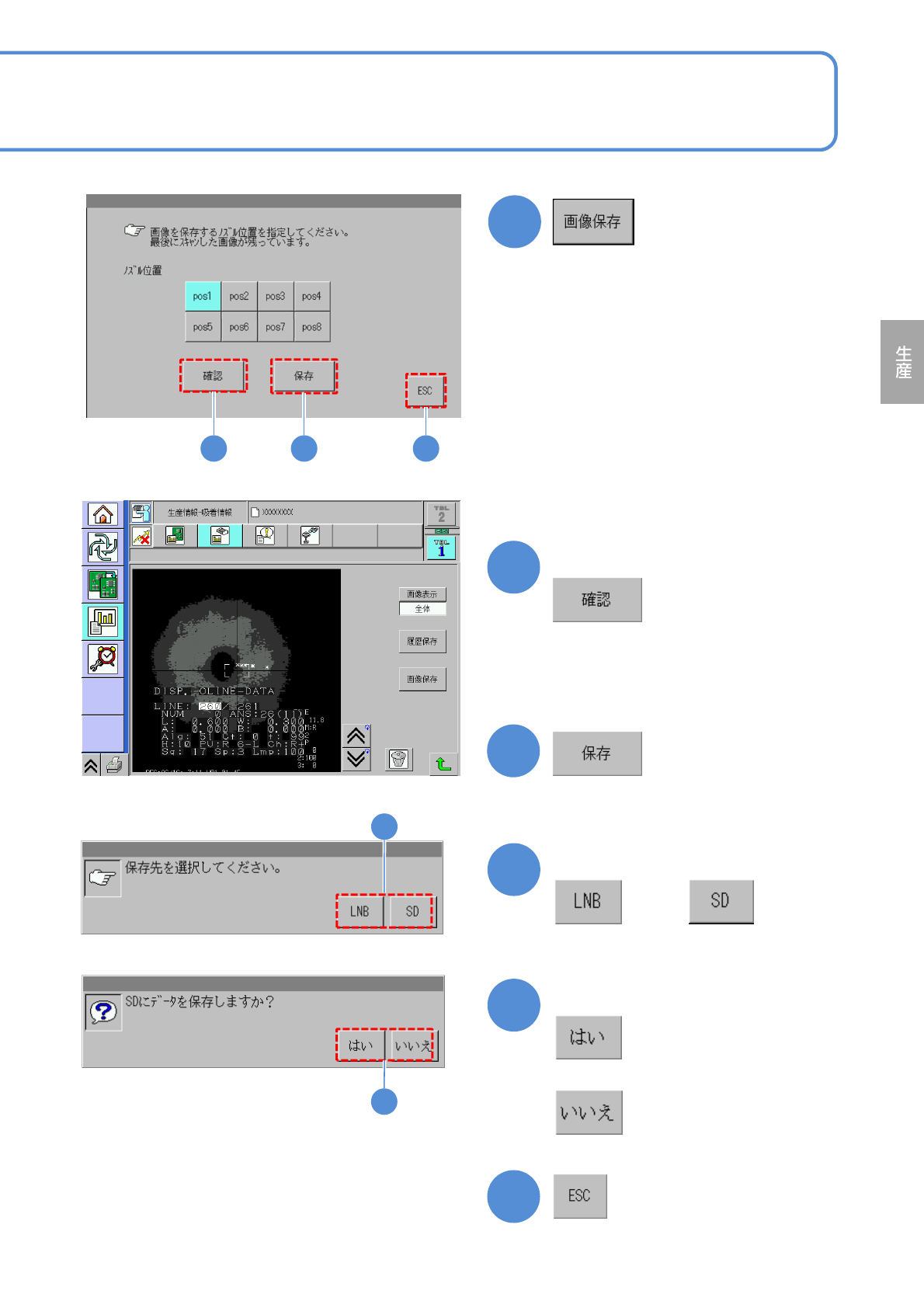 NPM-W 2 EJM7DJ-MB-03O-00 3-2-5 -1 ヘッドの塗布情報 生産中における塗布情報をヘッドごとに表示します 。 C B E A C B NZL ノズルホルダー位置を表示。 A TBL (テーブル) G F 捨て打ち 捨て打ち回数を表示。 E 塗布 塗布回数を表示。 移動動作のみでも、1回動作するた びに1回カウントする。 H F G H 材料名 認識エラー 捨て打ちの認識エラー回数を表示。 1 塗布ヘッド側のテ…