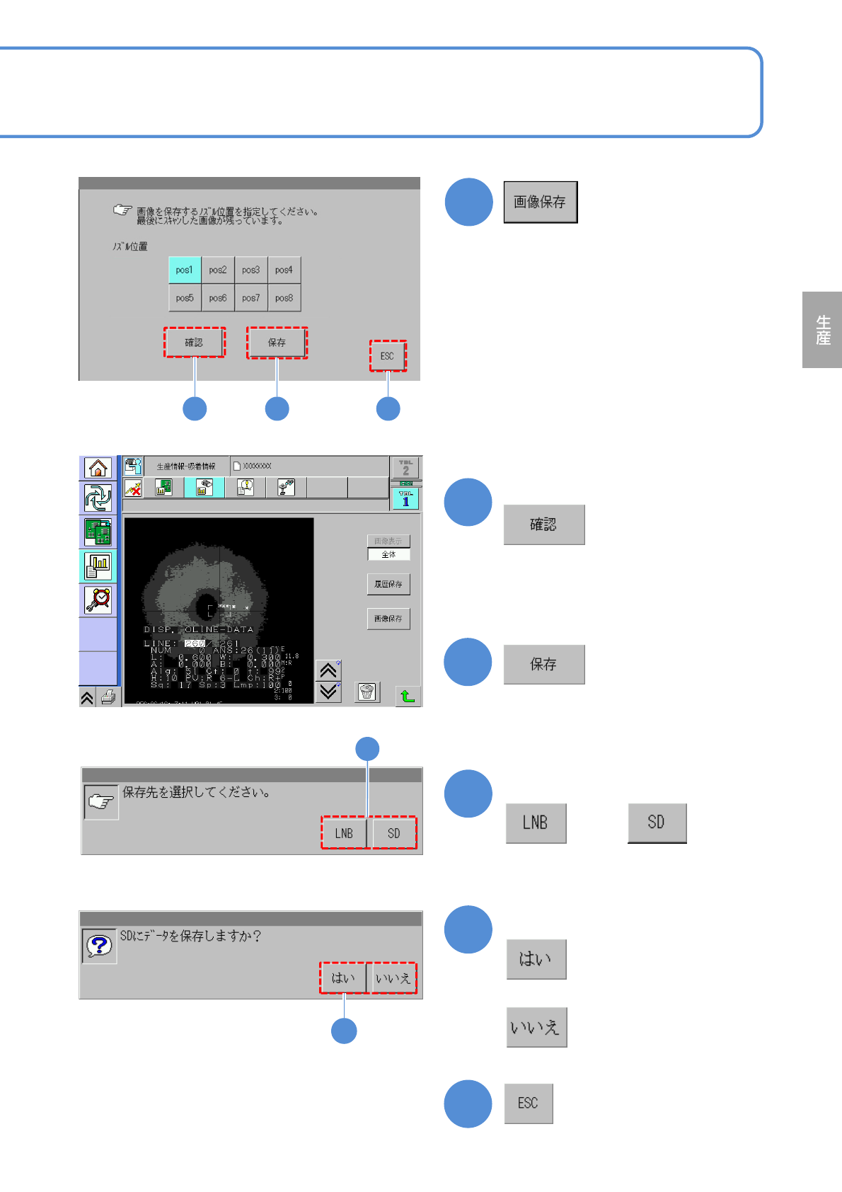 NPM-W 2 EJM7DJ-MB-03O-00 ●エラー時の画像をノズルごとに確認 し、保存することができる。 ノズル位置を指定して 3-2-6 -4 6 ■確認するとき 7 ( 認識エラー画像が表示される ) ■保存するとき 8 9 10 メッセージを確認して または メッセージを確認して ■データを保存しないとき ■キャンセルするとき 11 9 10 7 8 11