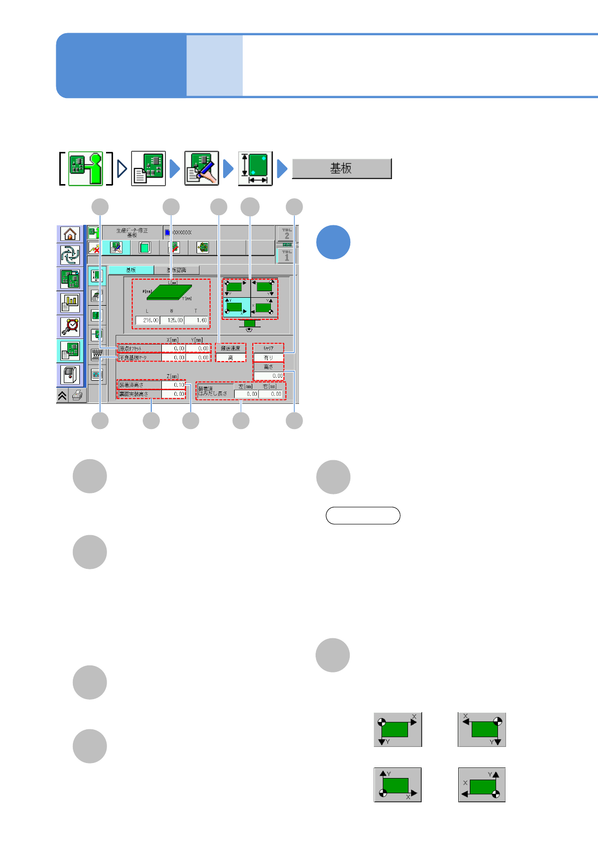 装着座標、基板認識座標、不良マーク