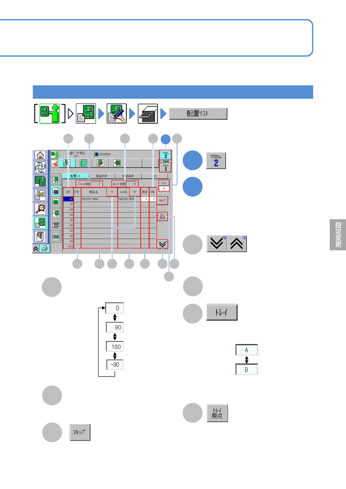 NPM-W 2 EJM7DJ-MB-06O-00 データ 修正 6-1-7- 1 事前に DGS で登録した通常使用するマ スター部品と代替させるサブ部品の データの確認と修正ができます 。 1 1 部品名を選ぶ 2 3 3 2 ( サブ部品が登録される ) サブ部品を選ぶ ●代替部品の補充(→ P.3-3-1 ) 代替部品の登録 (インテリジェントフィーダー) ●表示されている部品はマスター部品。 ■設定しないとき 操作編 6-1-7