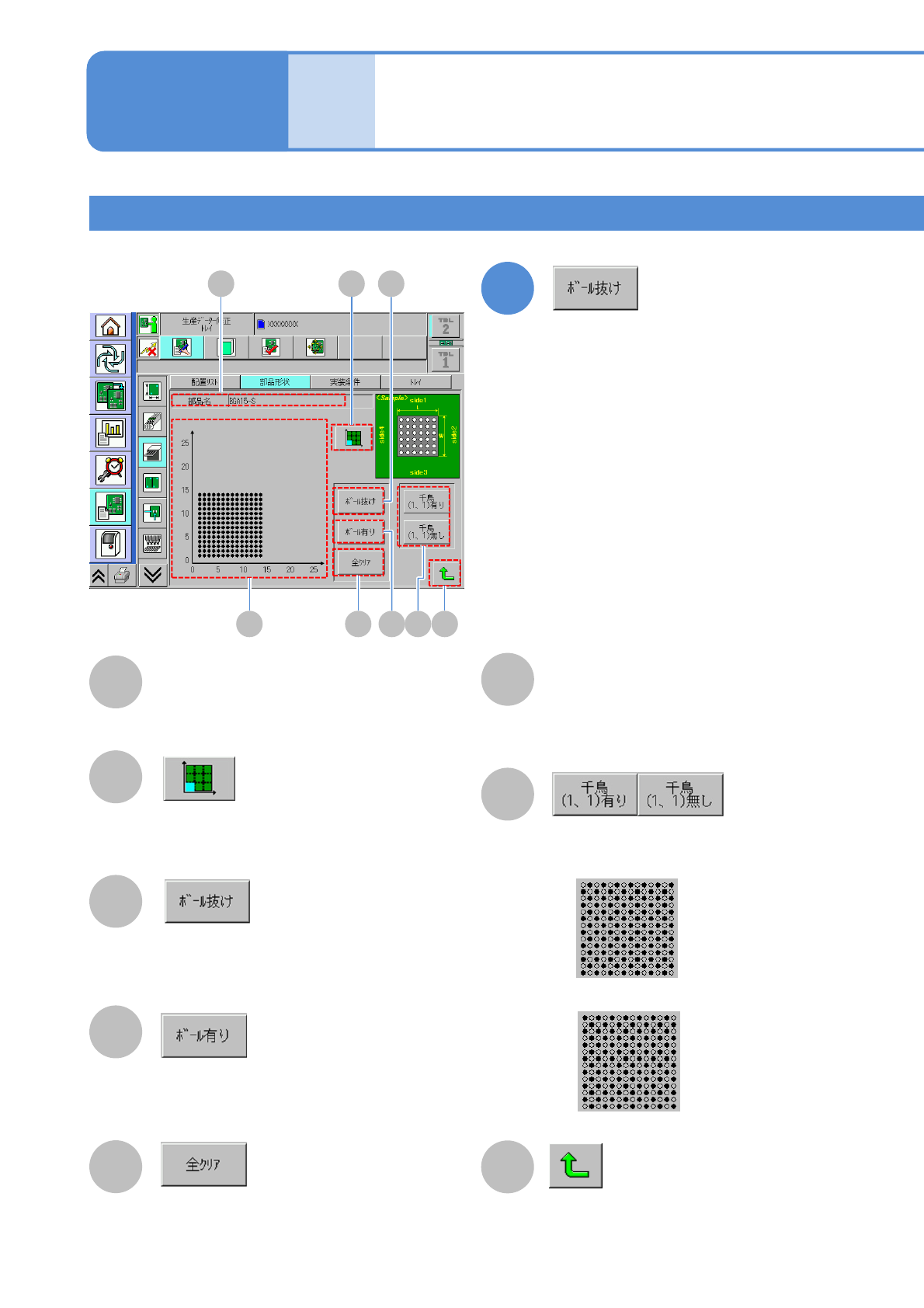 ボール抜け情報の確認、修正を行う。