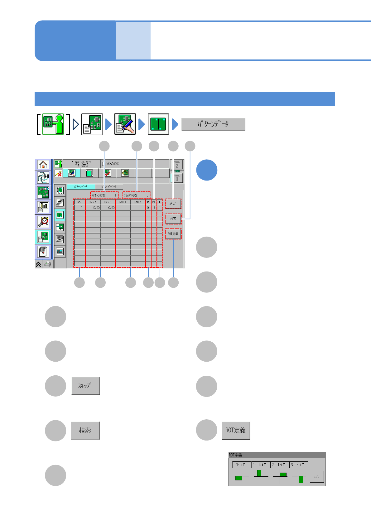 パターン属性を確認と修正する方法を説明します。(→P.6-2-2)