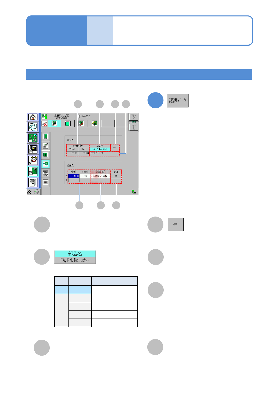 ●生産データの装着点を修正する画面について説明します。