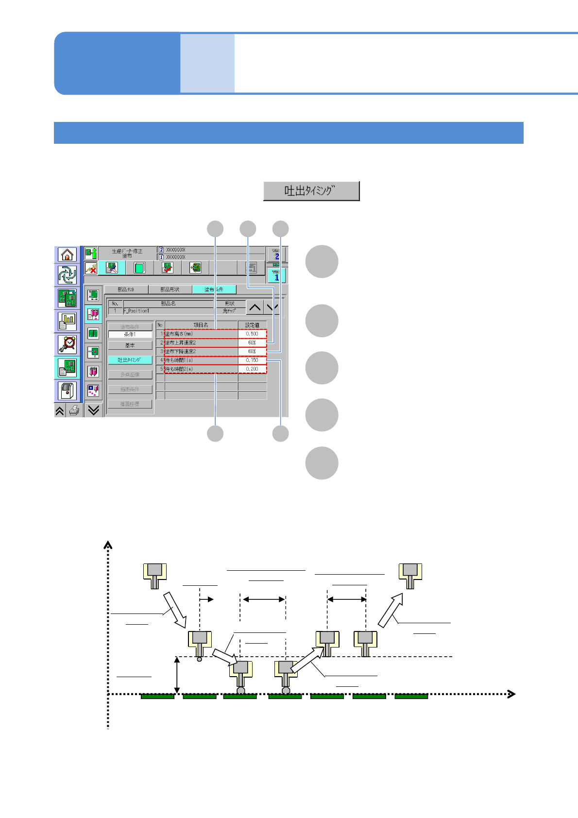 NPM-W 2 EJM7DJ-MB-06O-00 6-1-15 -2 I 塗布時間 (s) J ヘッド上昇位置 (mm) K 吐出タイミング制御 吐出タイミング制御の有無を表示。 L 塗布ヘッド停止位置 (mm) M 塗布タイプ 塗布タイプを表示。 設備ではデータを修正できない。 G 塗布上昇速度 H 塗布下降速度 シリンジの上昇速度を選ぶ。 100% 80% 60% 40% 20% シリンジの下降速度を選ぶ。選ぶ順 番は、 「塗布上昇…