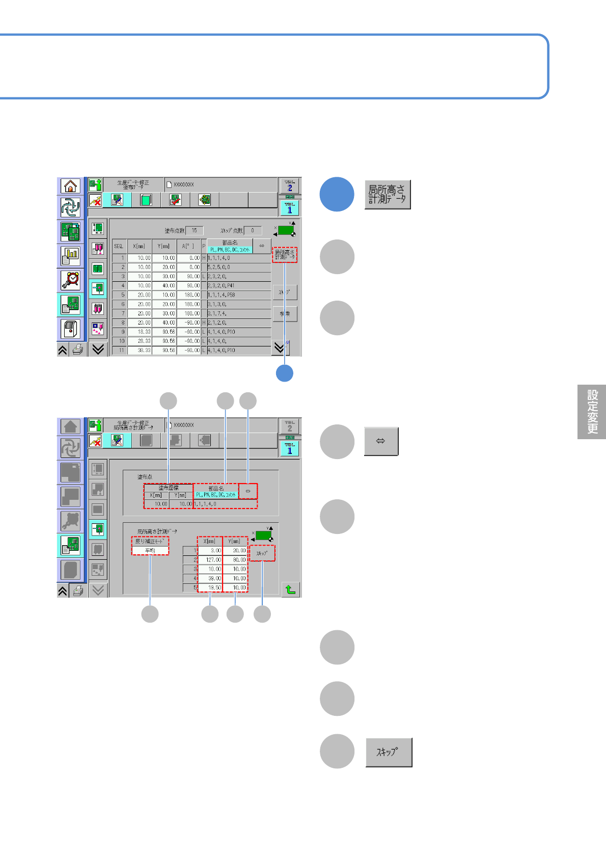 塗布座標に対する局所高さ計測のデータ入力、修正を行います。