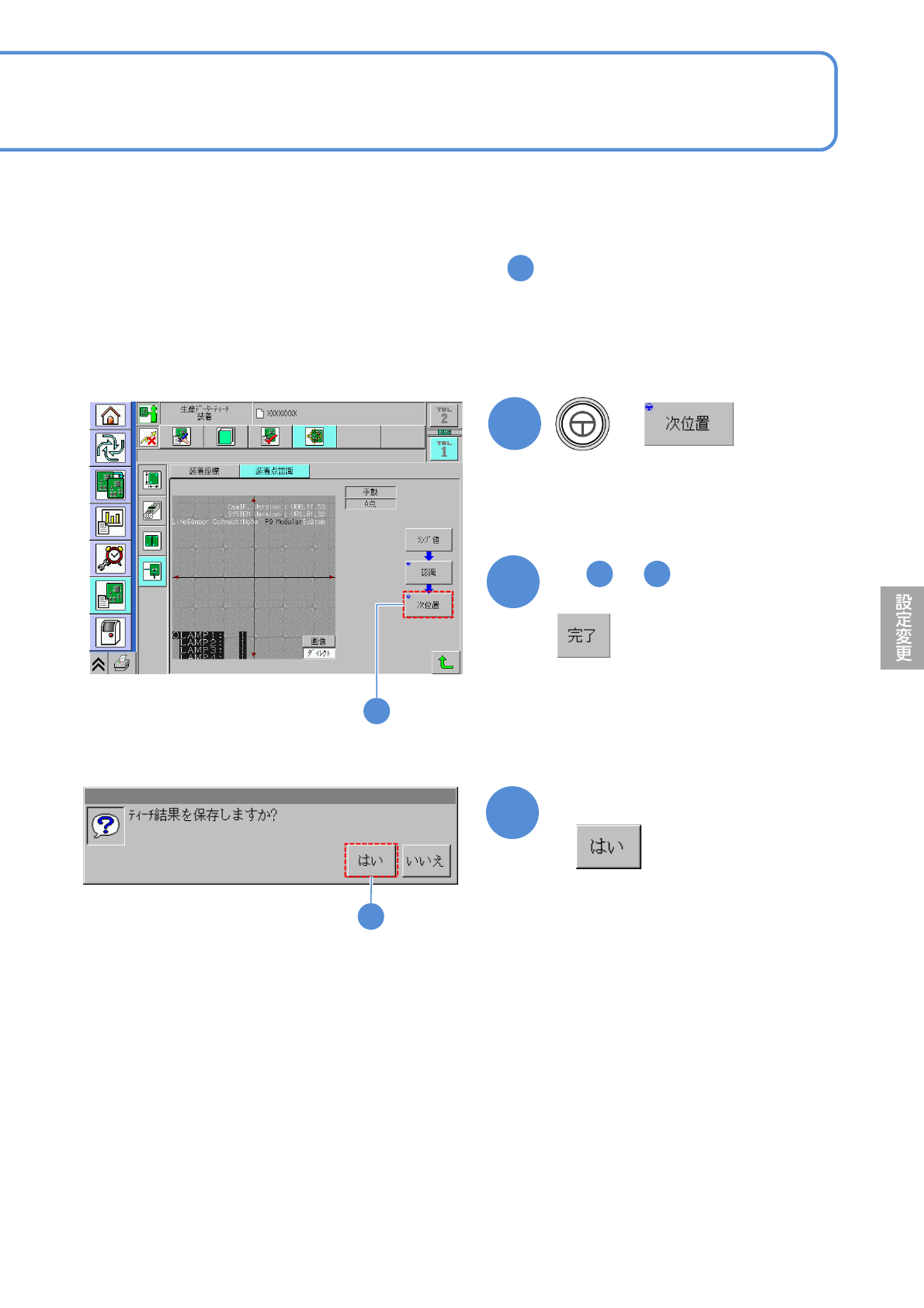NPM-W 2 EJM7DJ-MB-06O-00 6-2-12 -4 8 9 + ■多点認識のとき (次の装着点認識マーク位置に移動する) 手順 ~ を認識する点の回 数だけ繰り返して、最後に へ ■1点認識のとき 10 10 メッセージを確認して 10 6 8 (データが保持される) 8