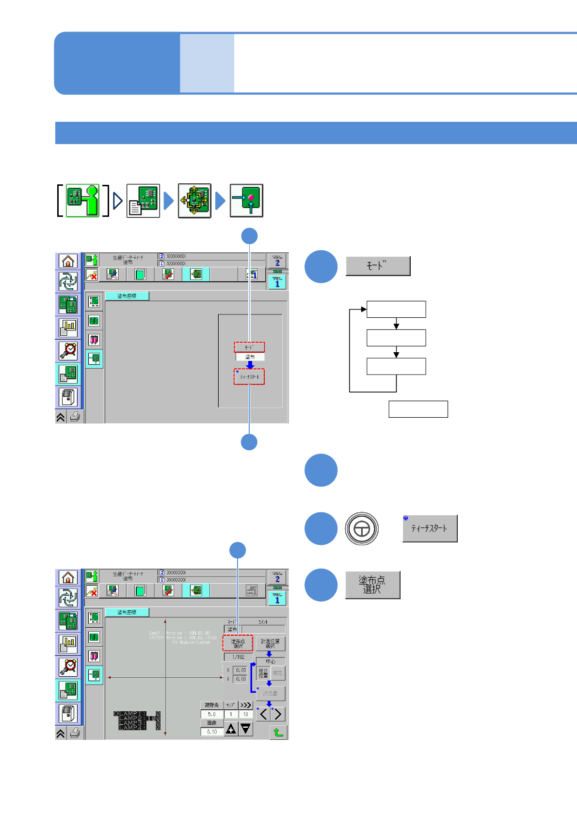 ここでは代表的な塗布座標ティーチングの操作手順を説明します。