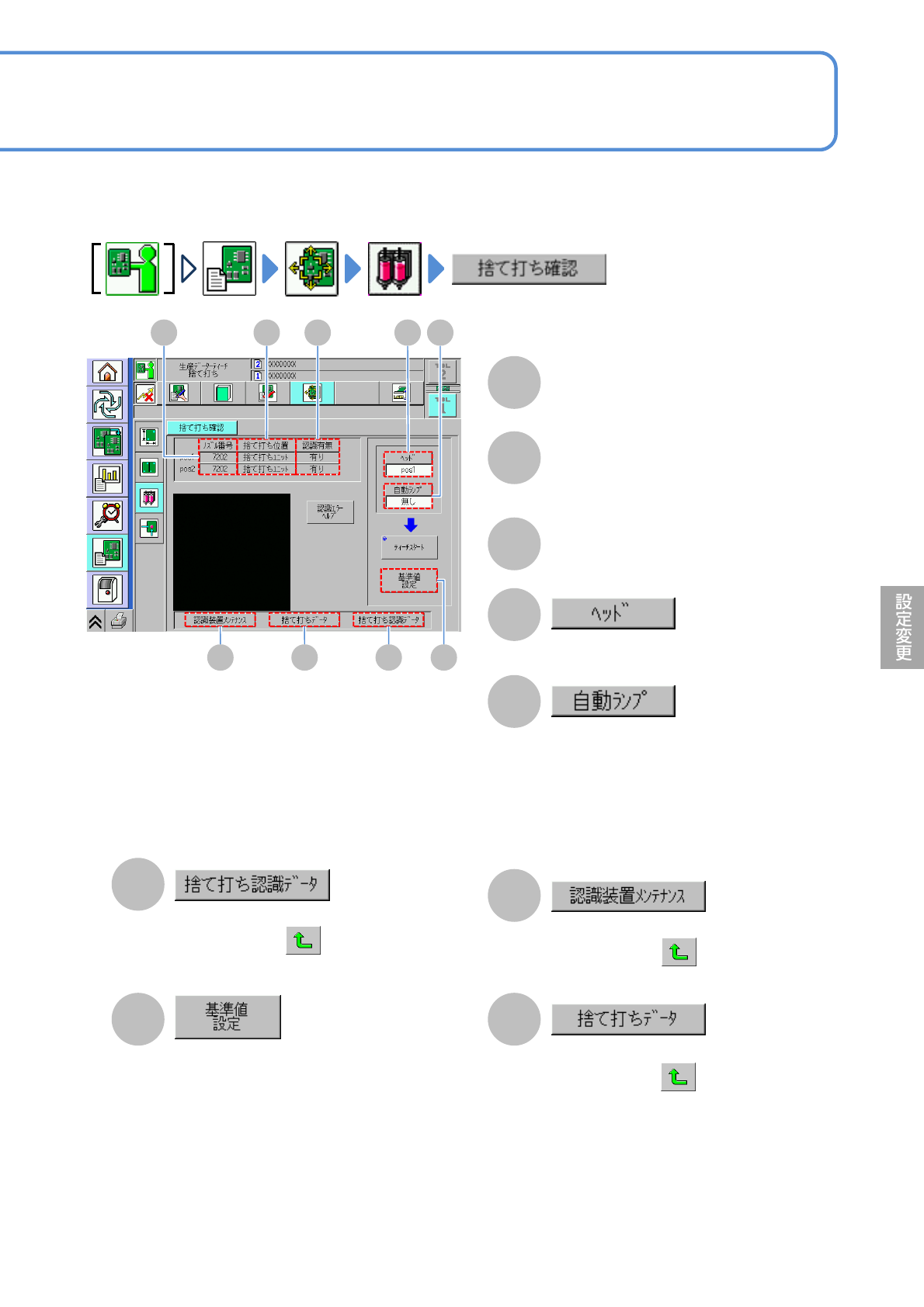 ●生産停止中の捨て打ち確認画面では、[認識装置メンテナンス]の操作は行えません。