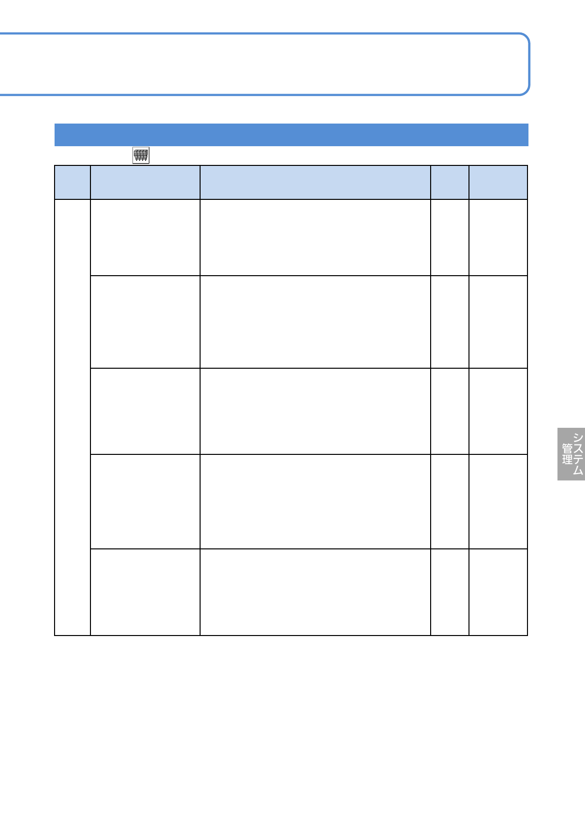 NPM-W 2 EJM7DJ-MB-07O-00 ユニット 設定 動作パラメーター の設定 3 7-1-2 -5 設定の内容 4 操作編 7-1-2 種類 項目 内容 初期値 設定範囲 メカ テープ上捨て打ち 間隔 Y [mm] 捨て打ちテープ上に塗布する際の Y 方向の 間隔。 ● 塗布ヘッドだけ有効。 1.00 1.00 ~ 5.00 判定 テープ切れ警告長 さ [mm] 捨て打ちユニットのテープ長さがこの設定値以下 になった場合に…