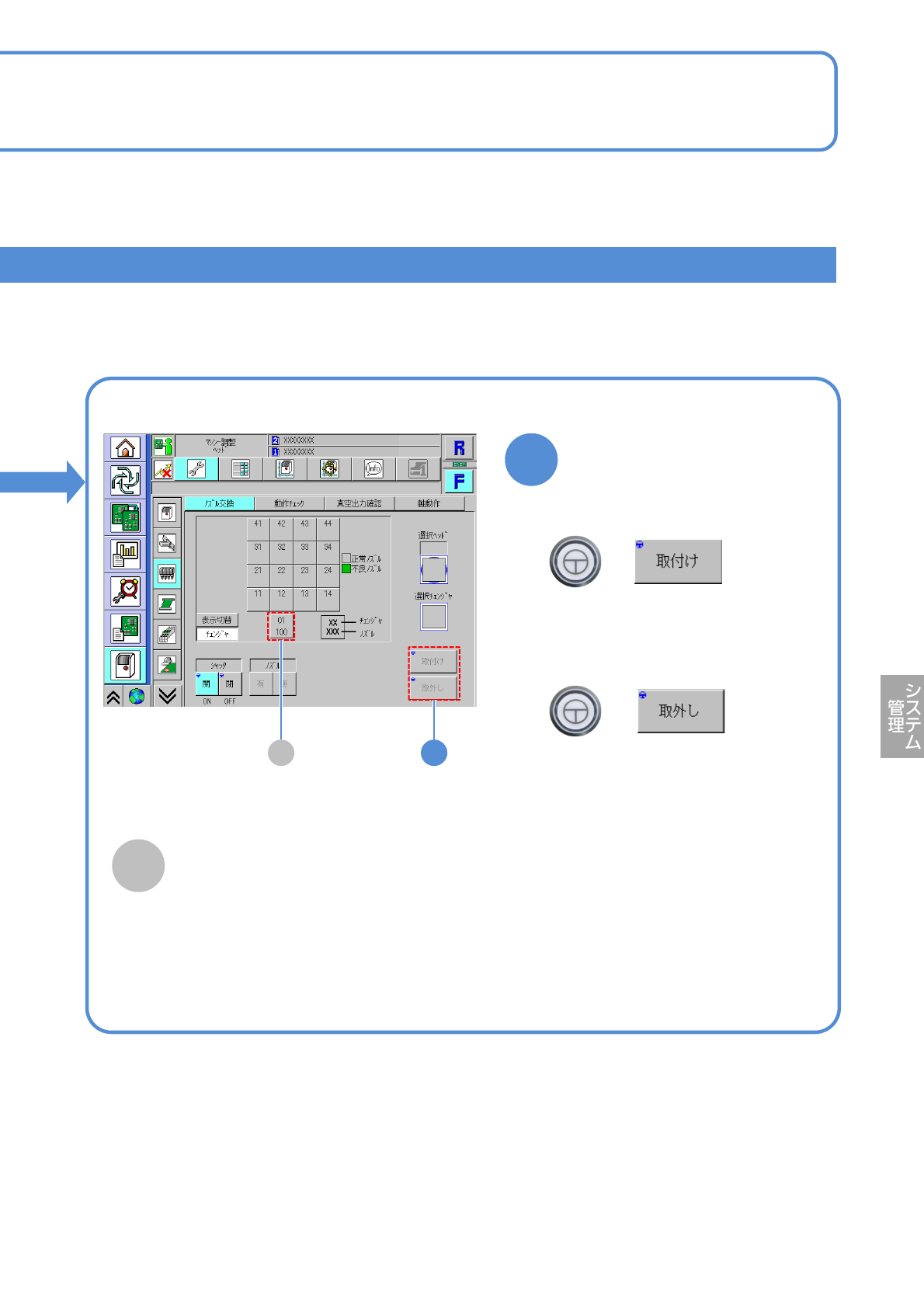 下受けピン自動交換機能仕様のときに表示