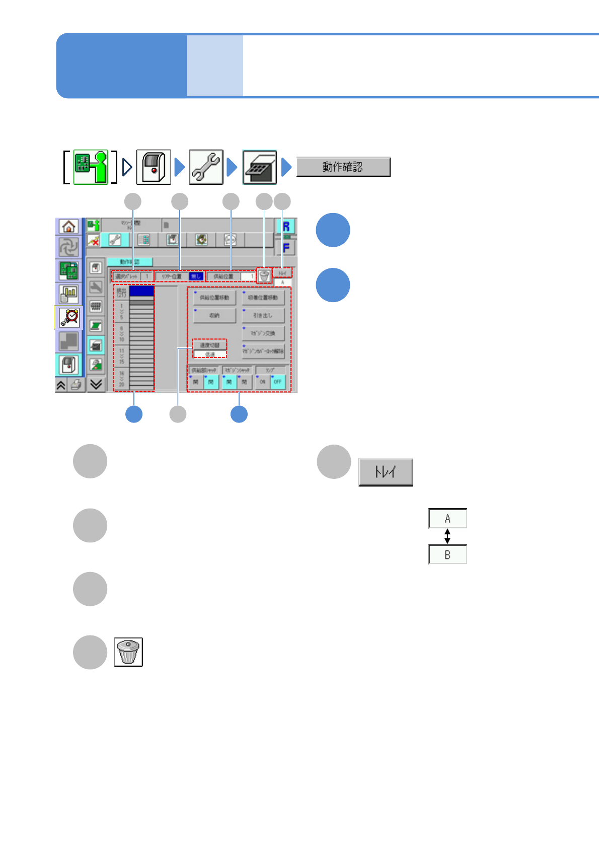 トレイフィーダー内のそれぞれの機能の動作を確認します。
