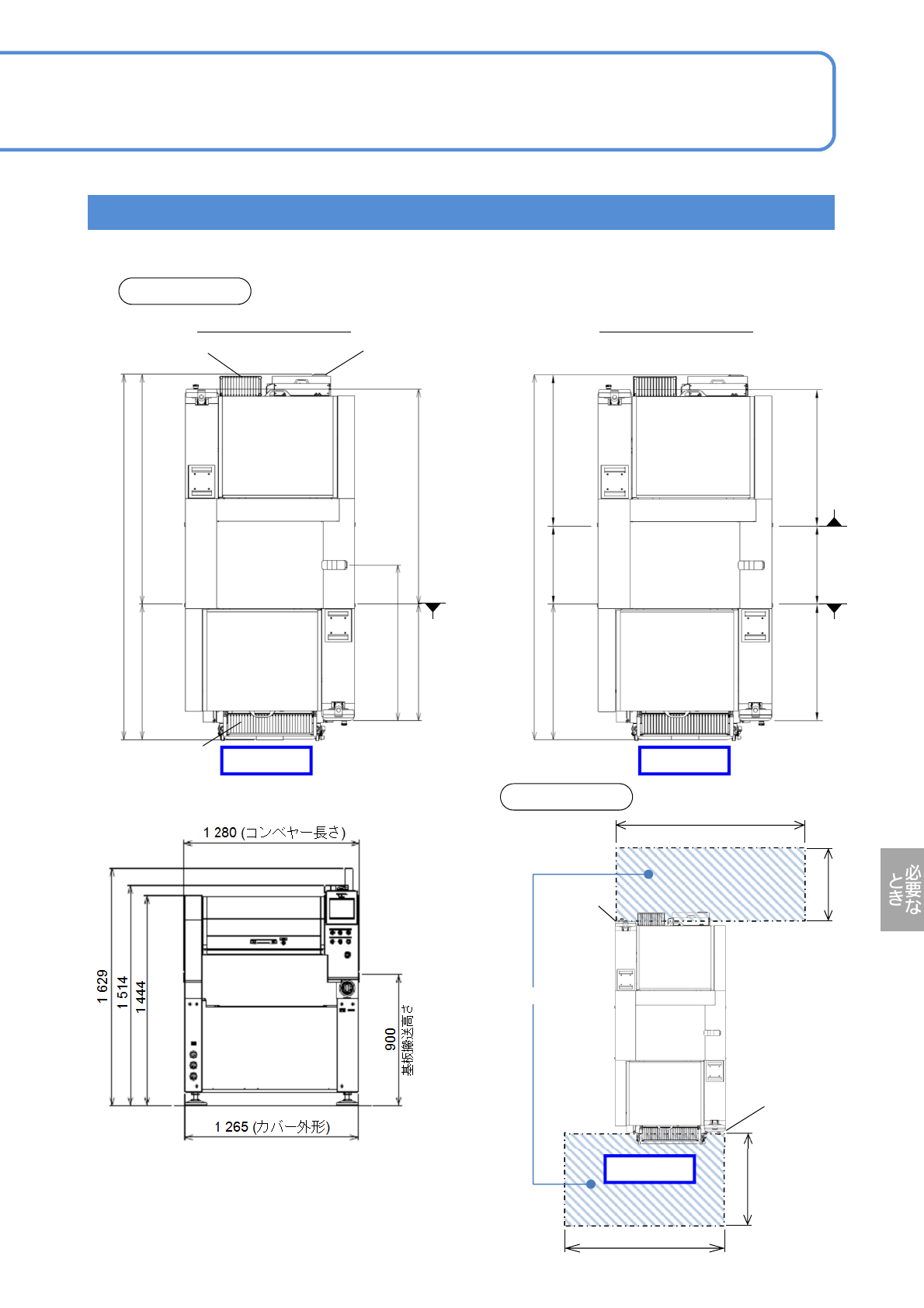 NPM-W 2 EJM7DJ-MB-09O-0 0 シングルトレイ仕様 9-1-3 -2 ( 単位 :mm) ■シングルトレイフィーダーを接続するとき 外形寸法 作業エリア 前側 2 570 1 616 954 1 095.5 820.5 1 511.5 デュアルコンベヤー仕様 シングルコンベヤー仕様 シングルトレイ フィーダー 13 連フィーダー ベース 交換台車 2 570 1 055.5 571 943.5 810 571 951…