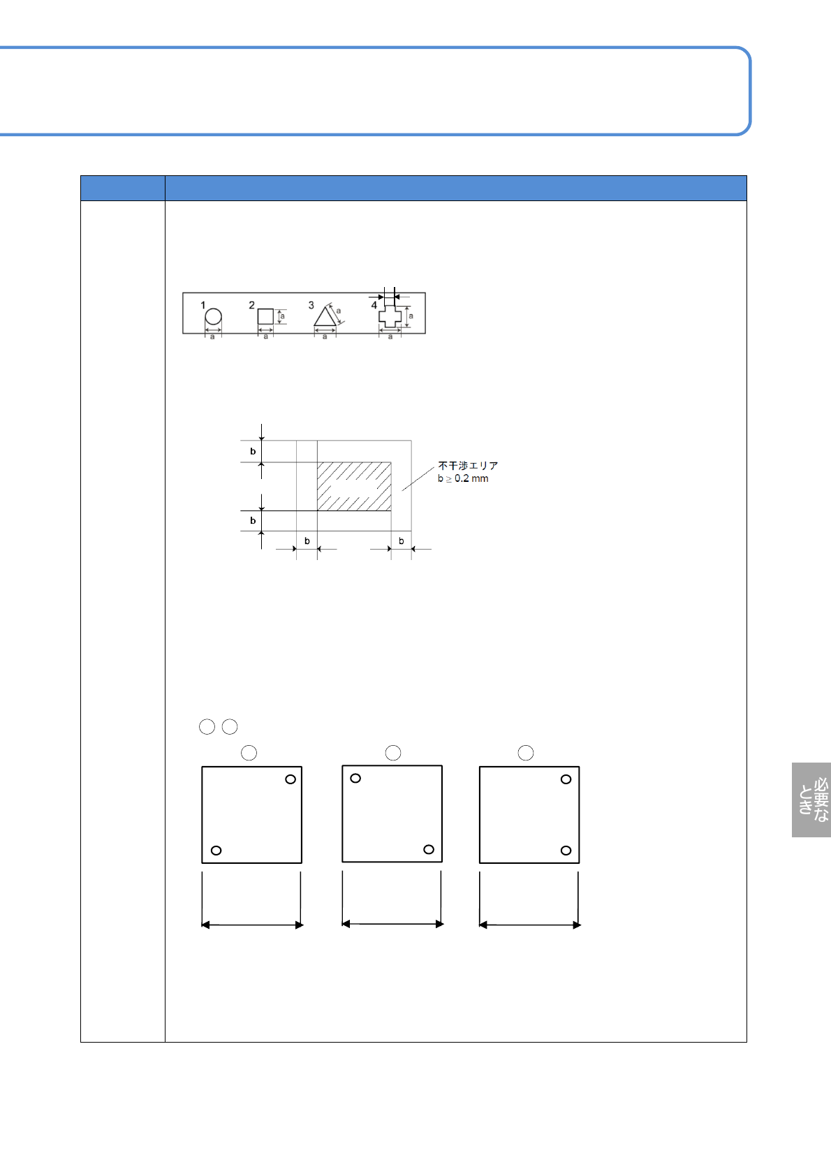 ●マークの背景には、そのマークと異なる一定の寸法以上の不干渉エリアが必要。