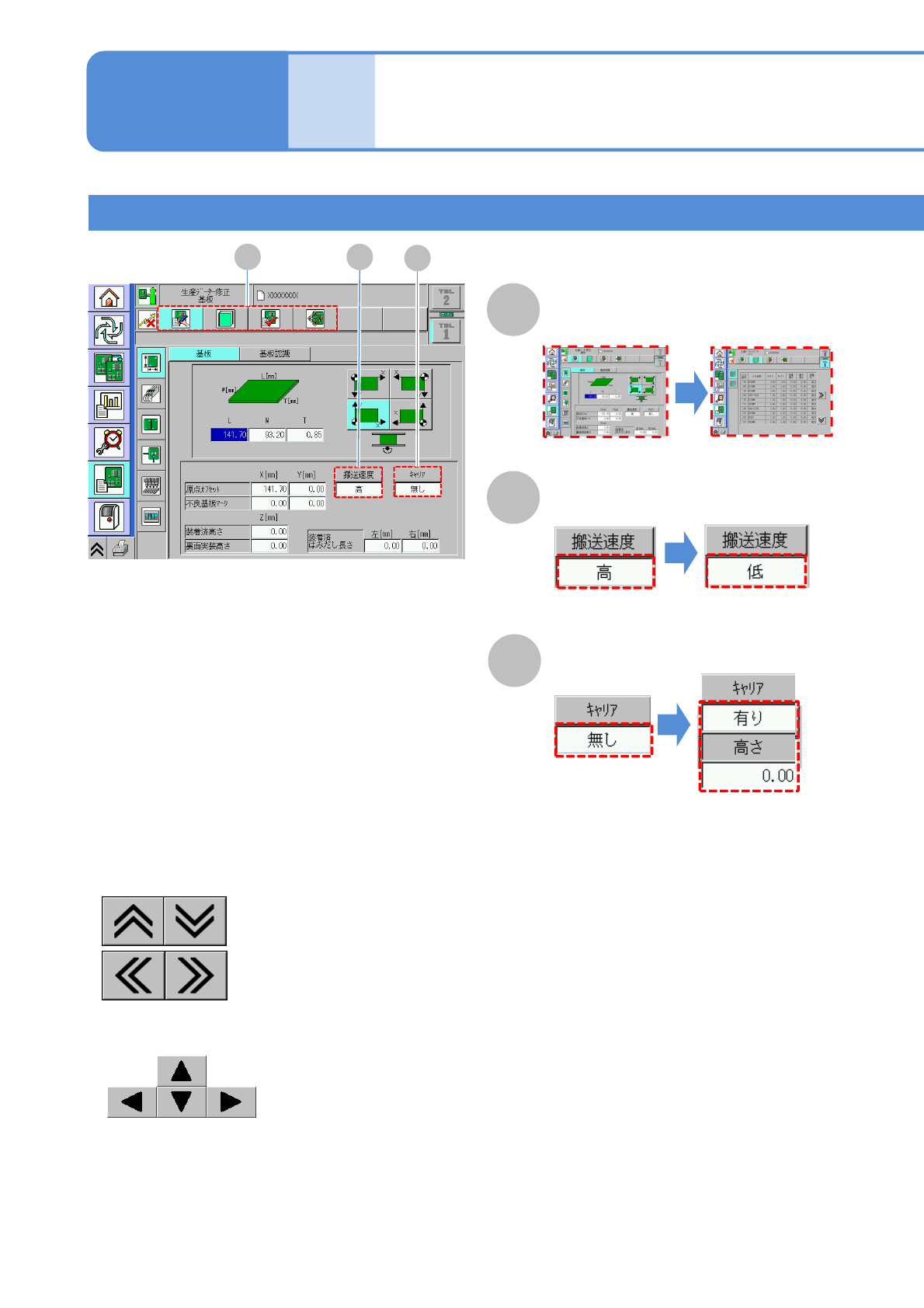 タッチパネルのそれぞれのエリアに表示される内容を説明します。