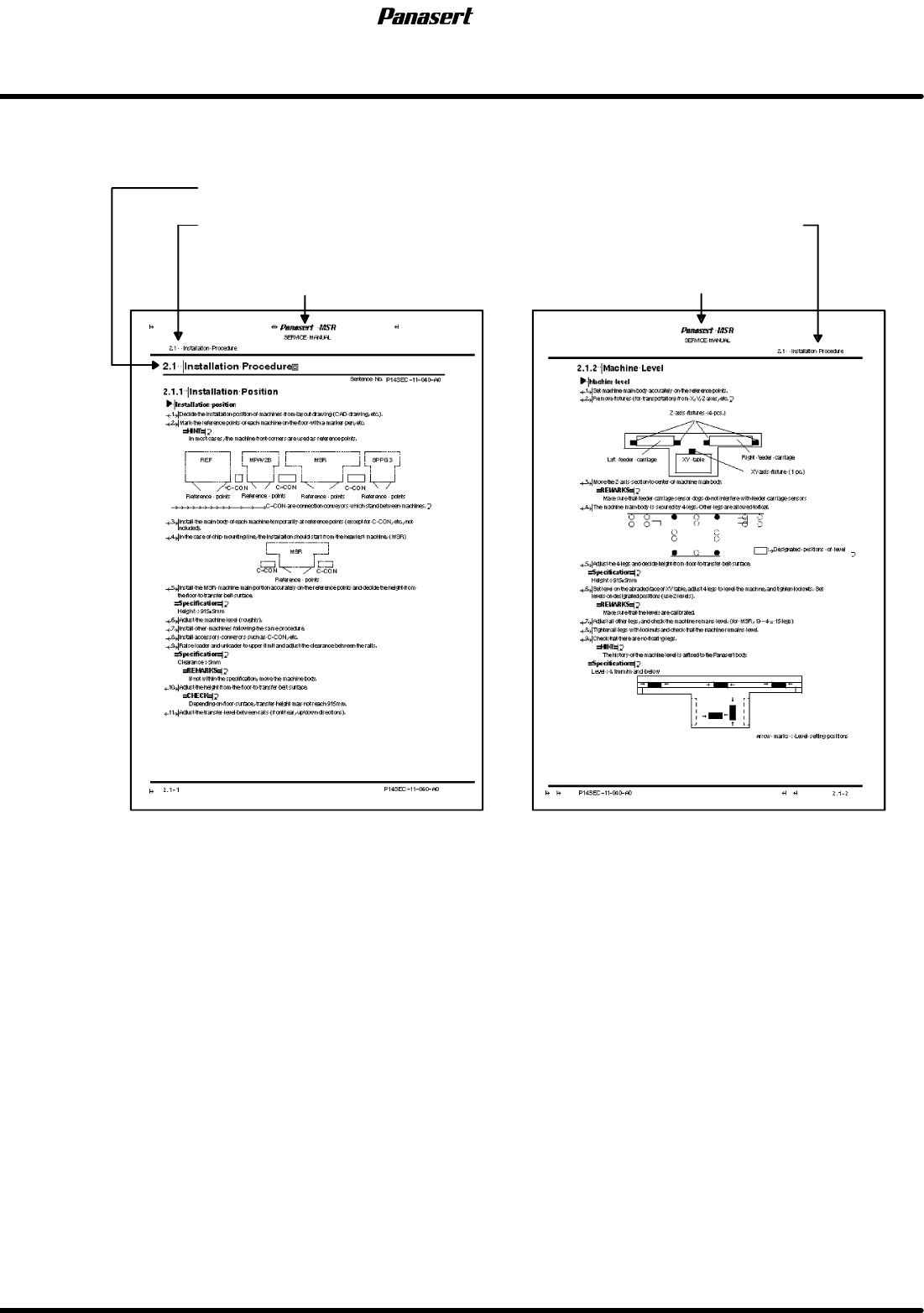 SPF 1.1 Use of This Manual SERVICE MANUAL 1.1−4 D54SEC−06−020−B0 T ext · The machine name, document name and section title are written on each page. Machine name and document name Section title Machine name and document …