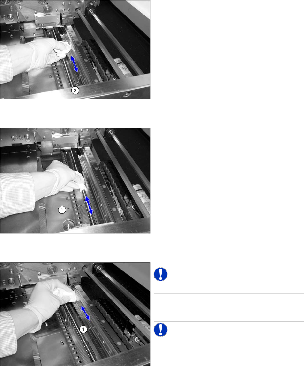 ► 将 SIPLACE 清洁布沿着丝杠螺纹的方向擦拭,从而
