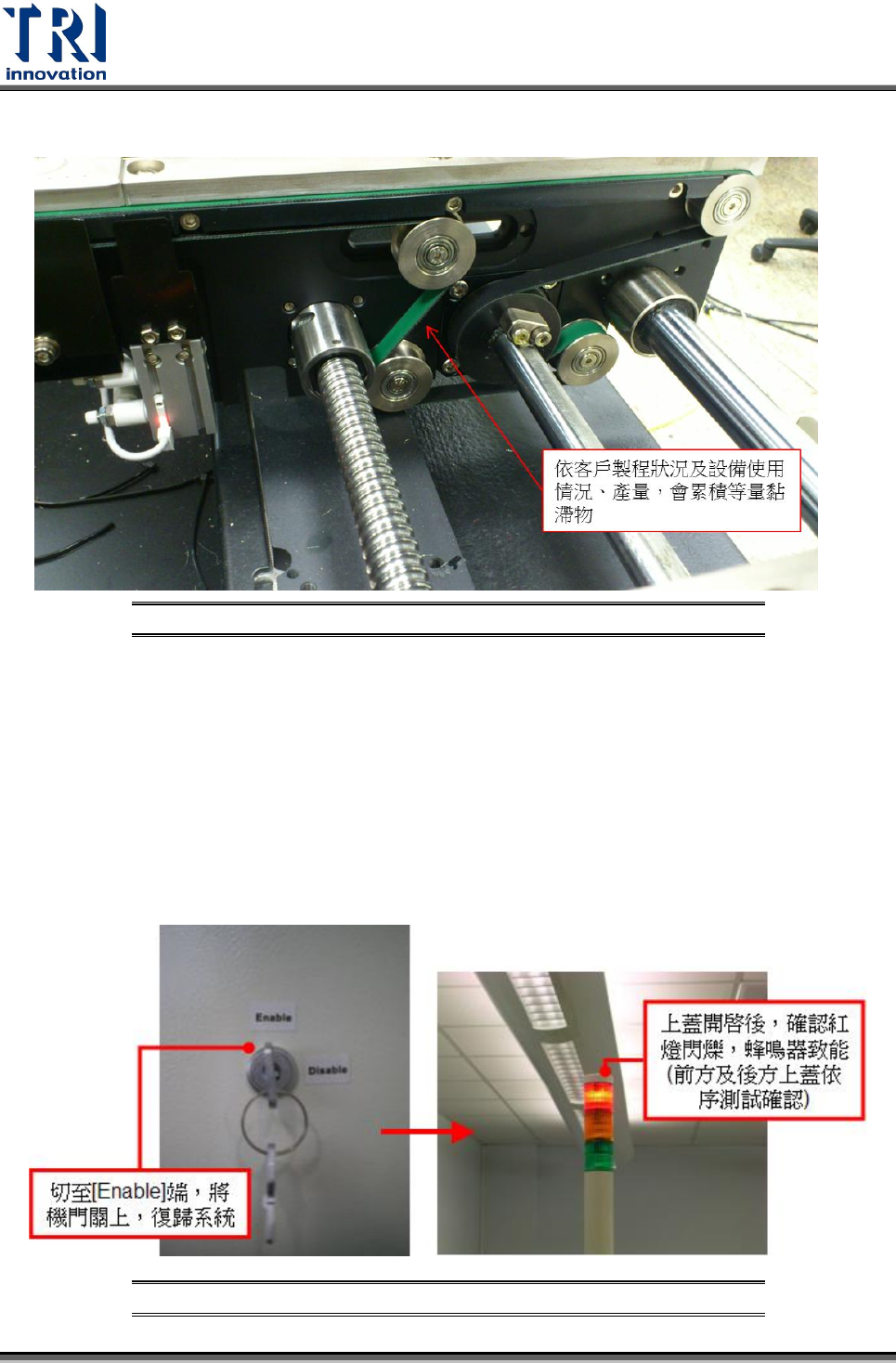 後上蓋,並從人機介面復歸系統。循序測試當前、後上蓋開啟時,警急停止動作是否