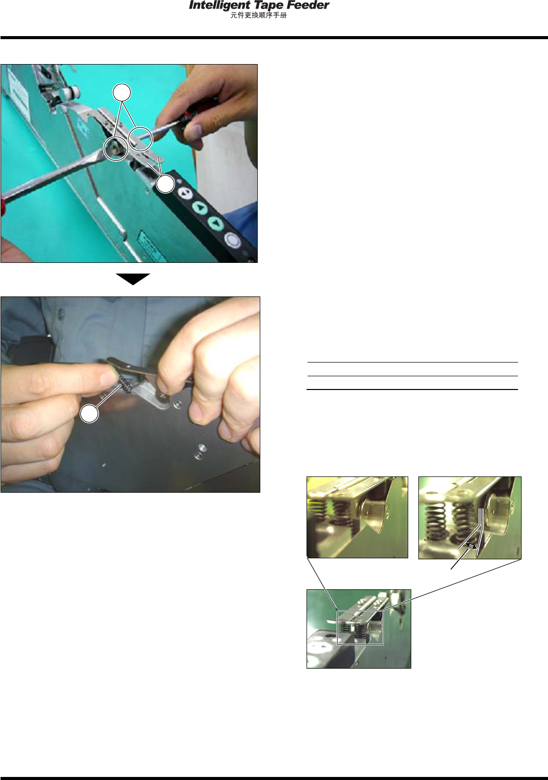 1.7 导杆部弹簧 Page 1-24 INTF-C-PEA01-A02-02 安装 1. 安装好 R 侧 /L 侧的导杆 之后, 暂时拧紧 固定螺钉 。 2. 将 R 侧 /L 侧的弹簧 放入。 3. 将固定螺钉正式拧紧后使其固定。 拧紧扭矩 100 cN·m ( 10 cN·m) L 侧 /R 侧两侧的间隙都要紧固 ( 如照片 a) 。 紧固状态如照片 b 时,导杆的动作将会变得不 顺畅。 ( 好的例子 ) …