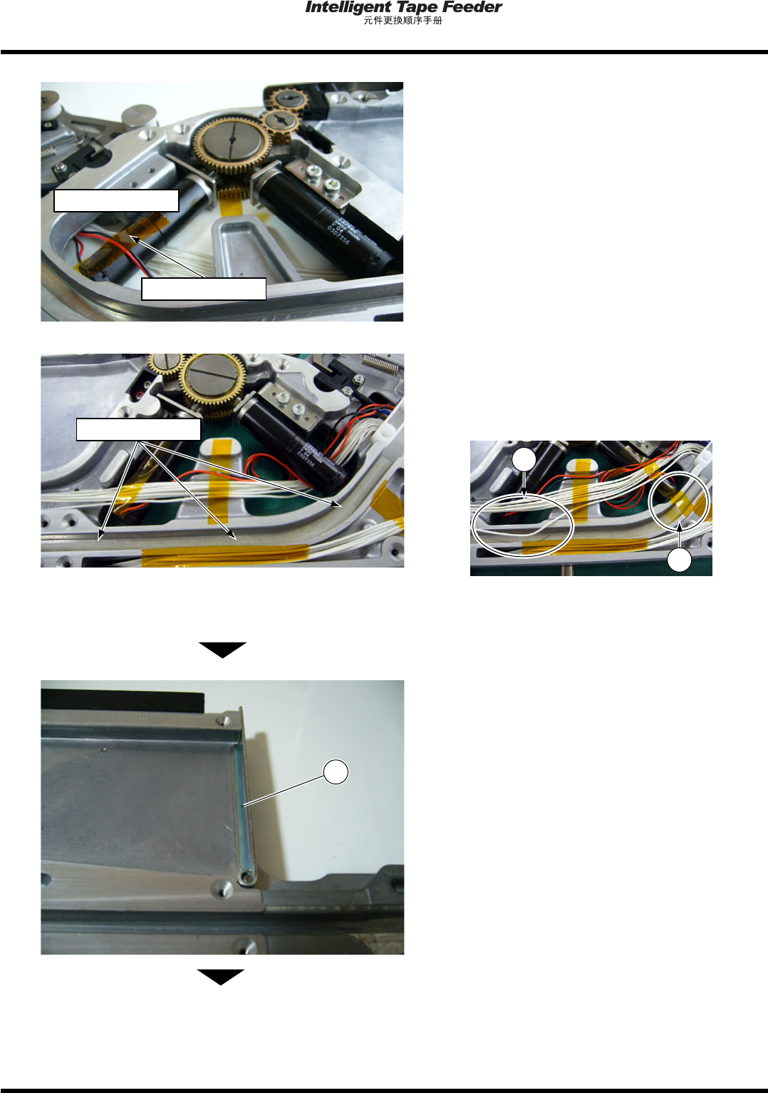 1.11 顶层带导入电机 INTF-C-PEA01-A04-02 Page 1-53 17. 将 L 侧 /R 侧的电机线整理后,放在 R 侧 的电机的左侧,用聚酰亚胺胶带固定在 R 侧电机上。 在固定配线时,请使配线高度不要超 过盖的安 装面上面,将其固定。 ( 安装盖时,这有可能成为卡住断线、短 路的原 因。 ) 请确认聚酰亚胺胶带、配线、配线盖 没有覆盖 在工件轨道 ( 滑槽 ) 上、 框架上面、 配线盖上面 。 ( 这有…