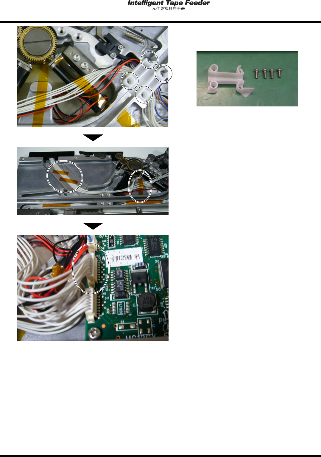 1.13 操作按钮 Page 1-66 INTF-C-PEA01-A04-02 安装 1. 将更换的操作按钮安置。 在将紧固螺钉插入,并将衬套插进的 状态下, 将其安置在框架内螺丝部。 请注意不要忘记安装衬套。 M2.5 18: 2 个 / 衬套 : 2 个 2. 将盖轻轻推到固定方向,在定位的状态下 紧固螺钉,将其固定住。 (2 处 ) 拧紧扭矩 30 cN·m ( 3 cN·m) 3. 在配线槽的范围内,为了使白…