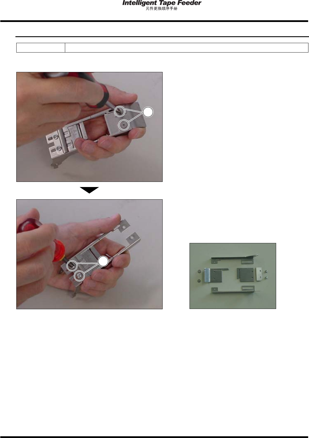 拆卸前侧固定螺钉和进给间距变更板螺钉的状