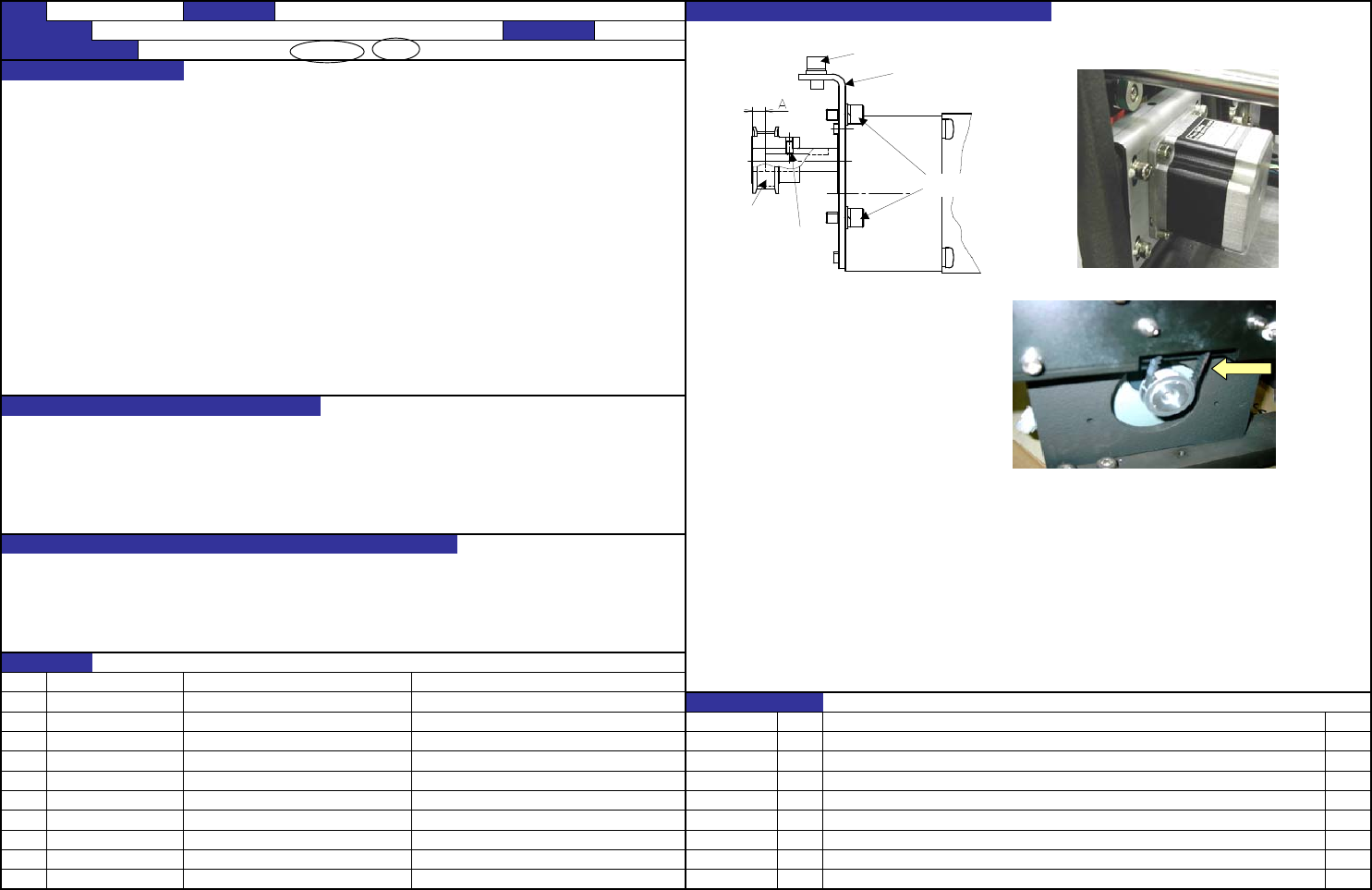 QA表 NO. 2 (1/2) NO. 2 (2/2) 机 种 1. 拧 松③的螺 丝 , 调 整②的前后位置。 1. 让马 达皮 带轮 的端面和CENTER 马 达 轴 前端面一致。 2.同 步 皮 带 的 张 力 17.6~21.6N 2. 拧 松 马 达支架C固定螺 丝 ⑥,左右移 动马 达支架C④。 拧 松 马 达固定螺 丝 ⑦,上下移 动 CENTER 马 达 组 件①。 请 注意不要碰到其它零件,用上述2 种 方法 测 定皮…
