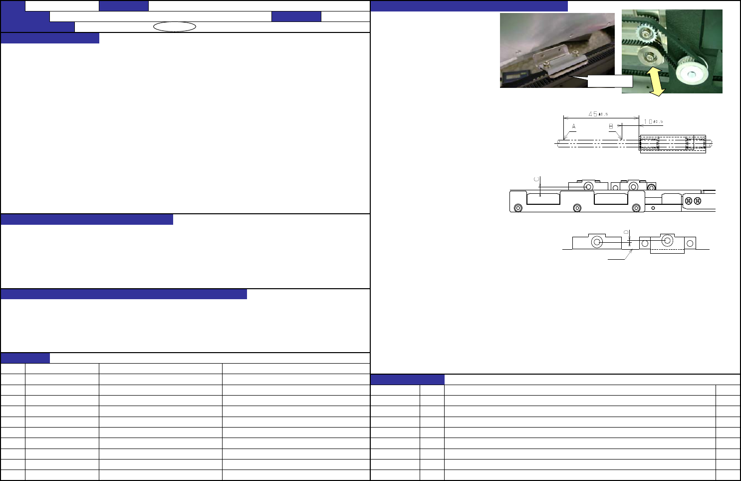 QA表 NO. 10 (1/2) NO. 10 (2/2) 机 种 1.用由尼塔公司制的音波式皮 带张 力 计 放到皮 带 上 进 行 测 定。 (Weight=2.5、Width=6.0 1. 调 整皮 带 的 张 力 Spa n=481/M、=577/L) 25~30N 上下移 动 惰 轮 的位置, 调 整 2.基准 销 的松 动 :60μm以下 张 力。 3.基准 销 ~ 传 送 轨 道FC的基板 导 向器面 为 止的距离 : 5…