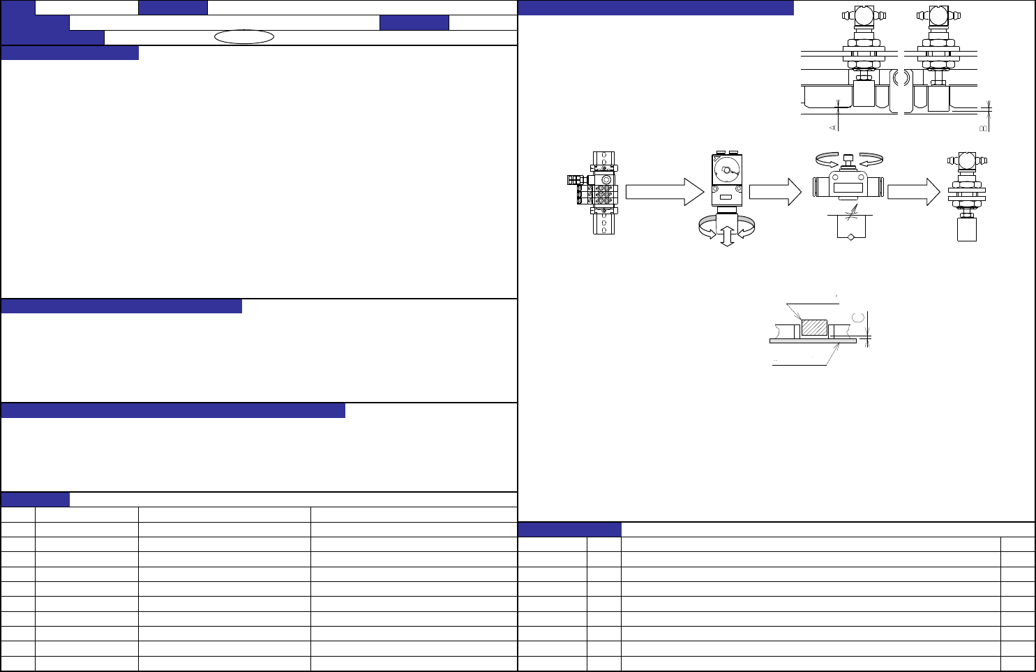 QA表 NO. 11 (1/2) NO. 11 (2/2) 机 种 1.速度控制 调 整 时 , 线 全部 拧仅 螺 丝 ,返回指定 转动 。 调 整后用螺母固定。 1.速度控制打 开 度:A 侧 (安装在气缸)从全 闭 打 开 1圈。 B 侧 从 电 磁 阀 ON信号到 夹 具探 头 ON(制 动 器 动 作完成)的 时间为 170ms±10ms。 2.止 动 板的 动 作 应顺畅 。 2.ON/OFF空气, 观 察止 动 板的 动 …