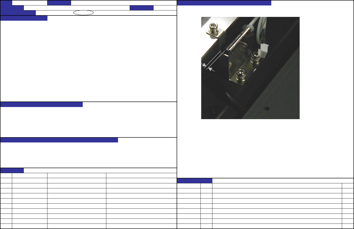 QA表 NO. 20 (1/2) NO. 20 (2/2) 机 种 支撑基板的背面 1. 拧 松高度 调节 螺母,把A尺寸 调 整到适当高度,然后 拧紧 固定。 1. 销 高度 : 96mm±0.1mm 1.BU台上面~基板下面的高度 调 整 1.高 时 : BU 销 碰基板(基板 损 坏,弯曲等) 低 时 : BU 销 到达不了基板。 NO ① ② NO. 担当人 ③ ④ ⑤ ⑥ ⑦ ⑧ ⑨ ⑩ 【5】-20 内容 '07.…