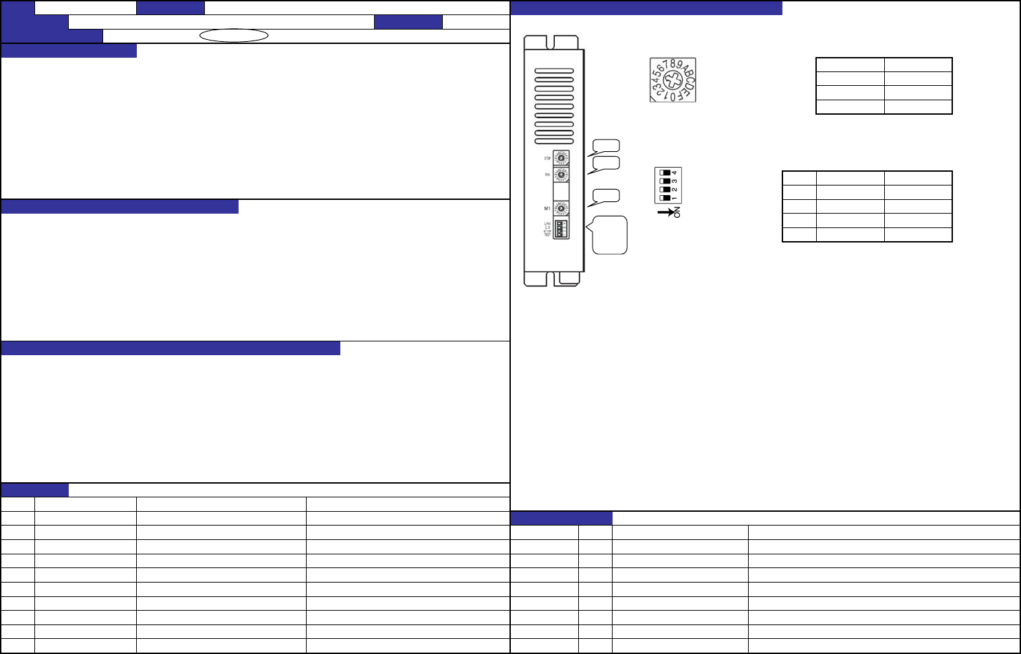 旋转开关如下表设定。