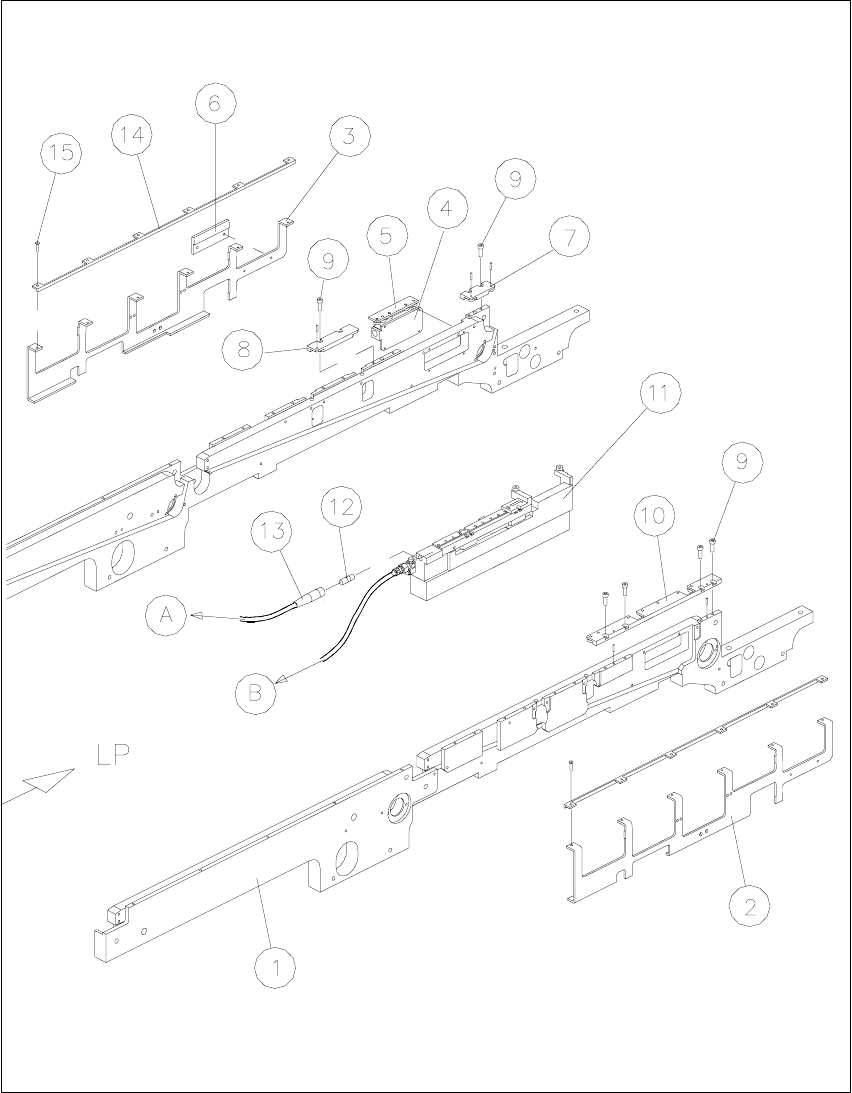 Abb. 1.4.3 Montage Niederhalter, Führungsleisten, Zentriereinheit; Anschluß der Zentriereinheit