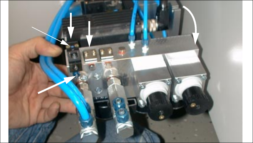 Abb. 1.4.4 Drucklufteinheit: Pneumatikschlauch und Magnetventilkabel, ggf. 2. Magnetventil montieren