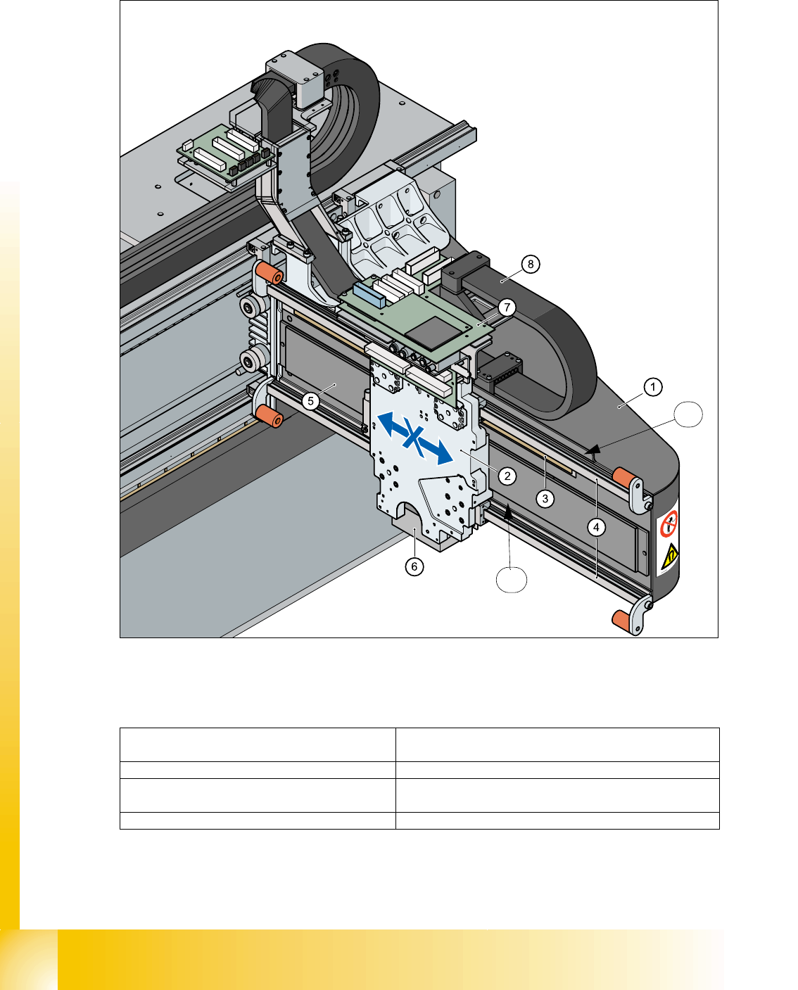 (1) Gantry X (Frame) (2) Mounting plate with head X-linear motor