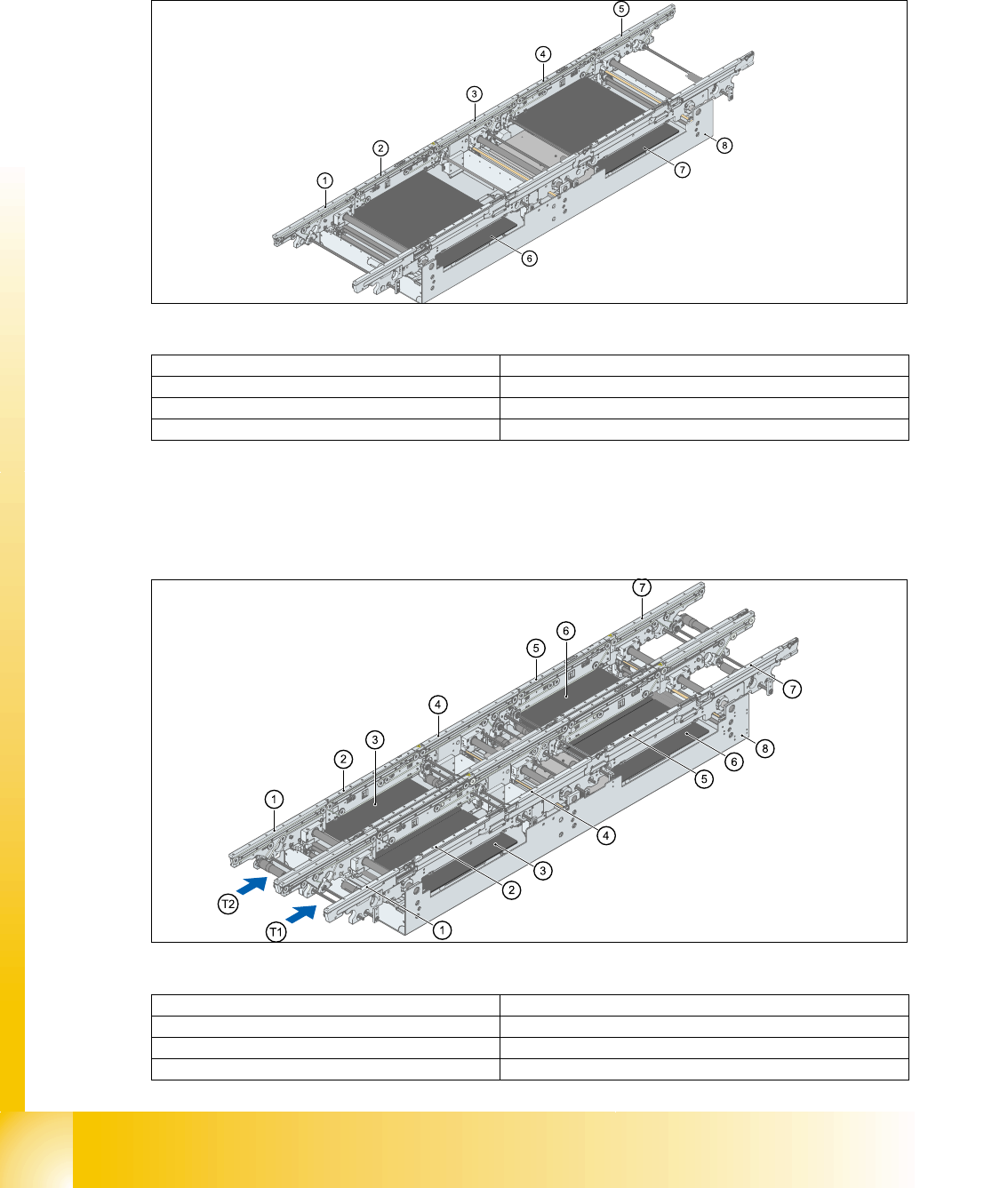 Dual conveyors have two transportation tracks (1 and 2). In the standard conveyor, the right-hand