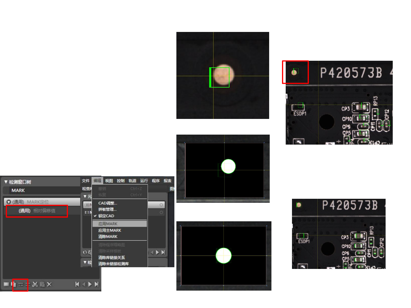 2. 在拼板上找到一个可以用算法定位而参照的中心 ,按