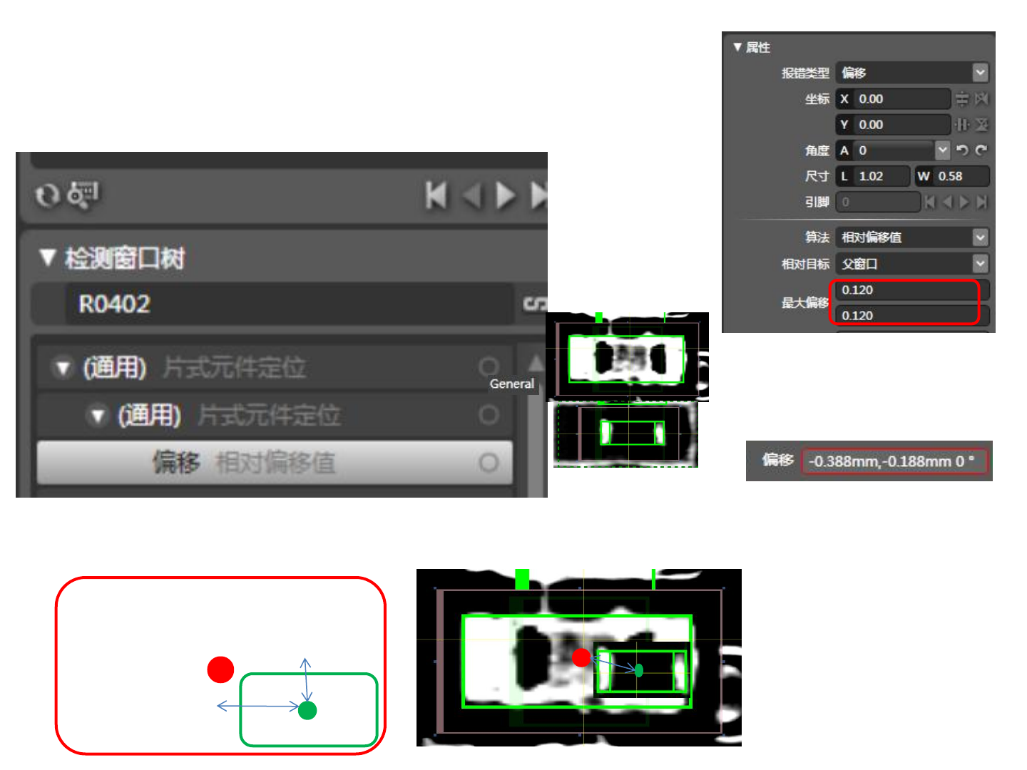 例越少越好 ,如果缺件,百分比为100%,即绿色为100%检测窗口,即报警缺件,以