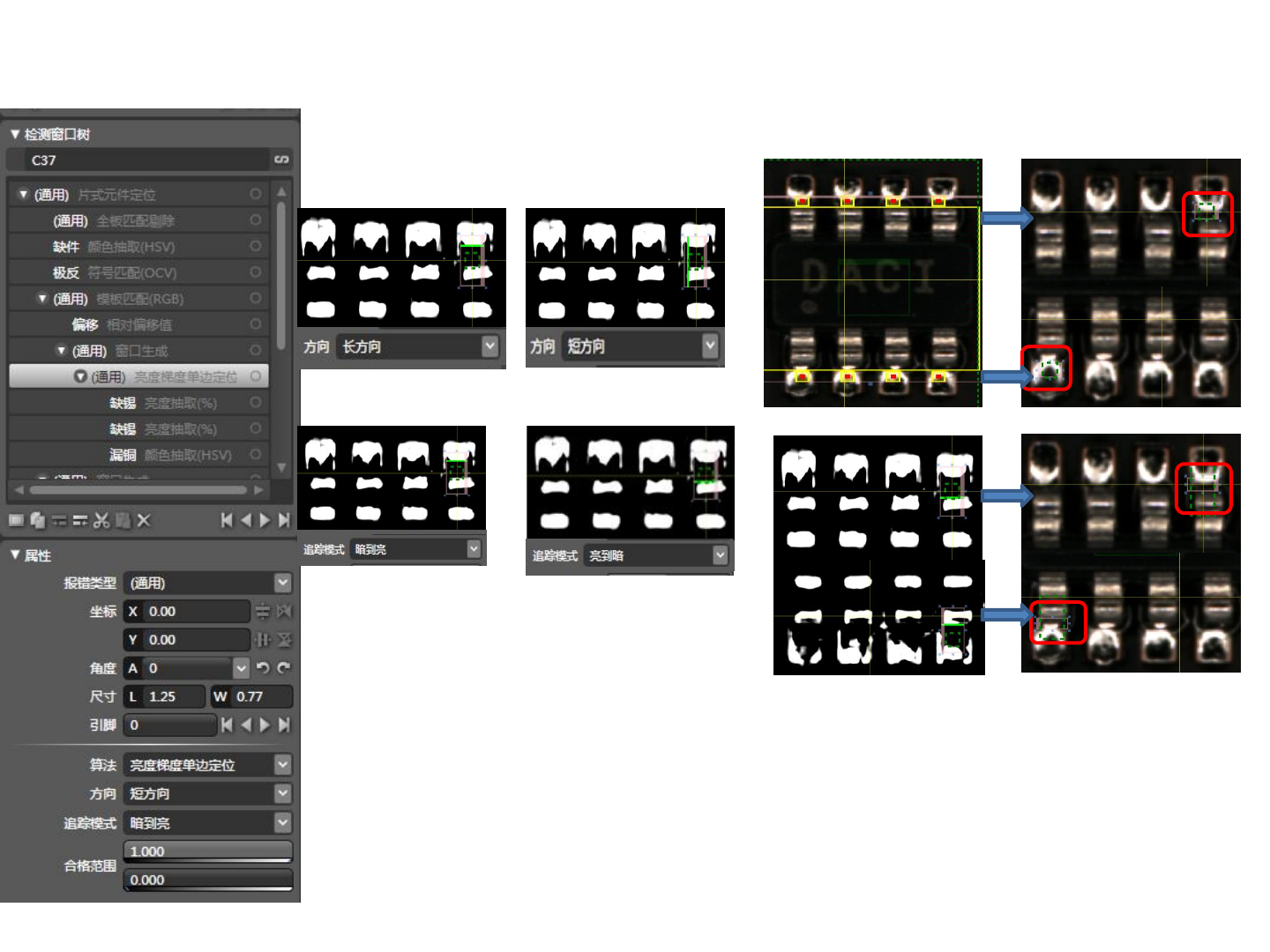 在检测窗口指定的区域内,以及指定的范围内,在指定的方向(长或短方向),自动追踪获取指定方