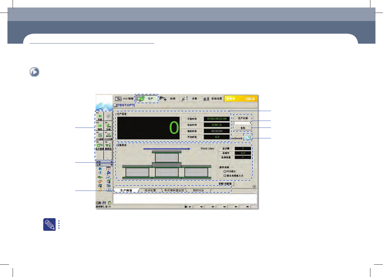 Chap ter 1 本 Chapter 介绍设备、操作面板及 MMI ( Man - Machine Interface )。 设备概要 Advanced Chip Shooter DE CAN S 2 Op e rat io n Ha nd b oo k 1-4 M MI 构 成画面 > 生产M MI 的画 面 结构 MMI 构成画面 2. 生产 MM I 的画面结 构 输入生产量 表示作业进行情况 生产关联 T ab Dia…