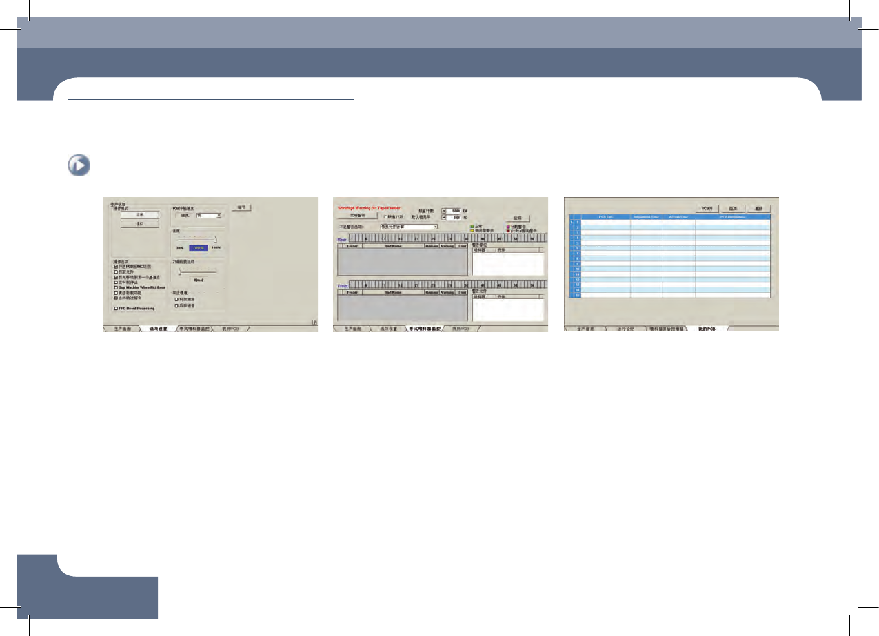 '运行设定'画面 '带式喂料器监控'画面 '我的PCB' 画面
