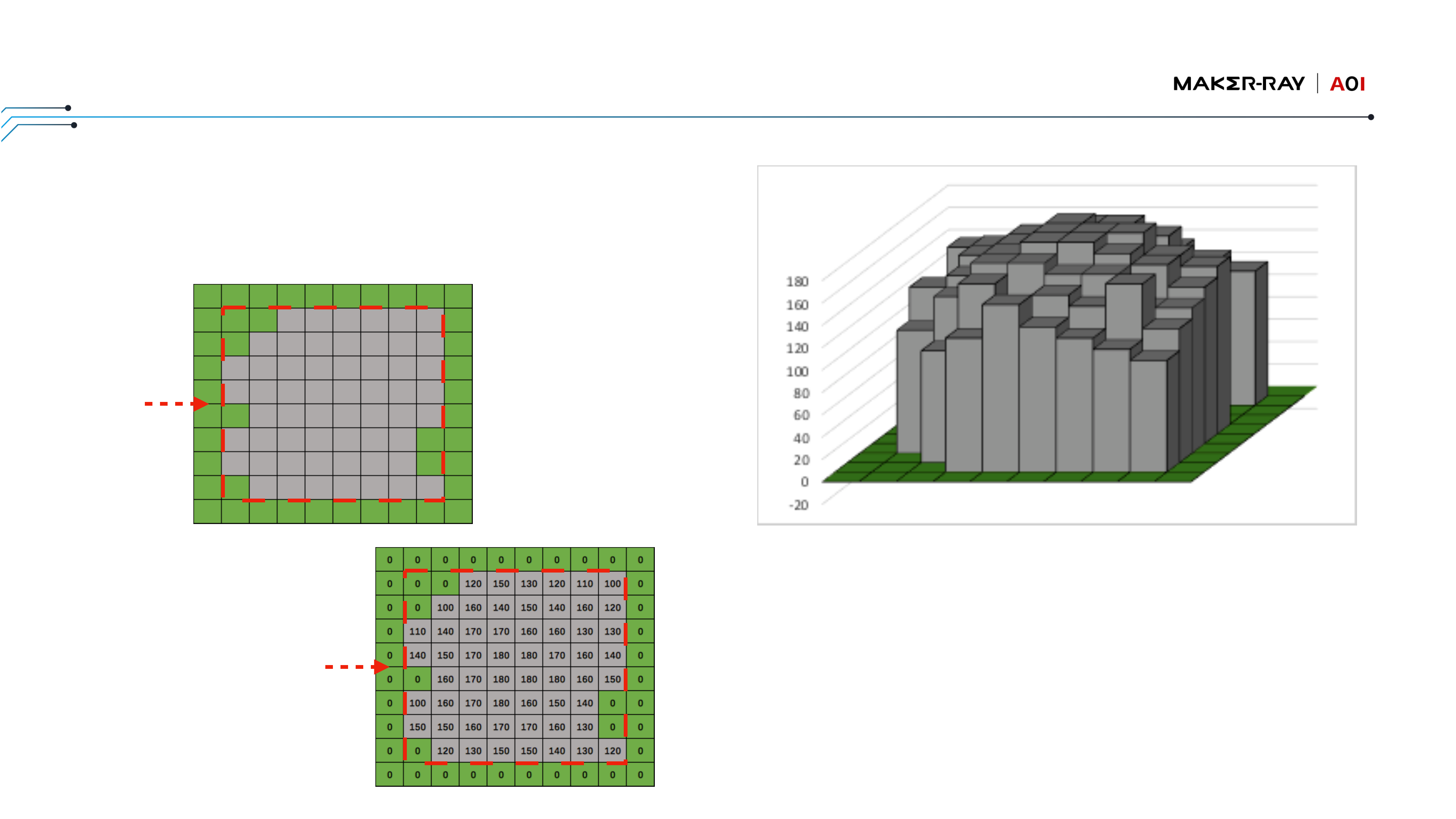 通过测量每⼀个像素范围内的⾼度值,再乘以每个像素
